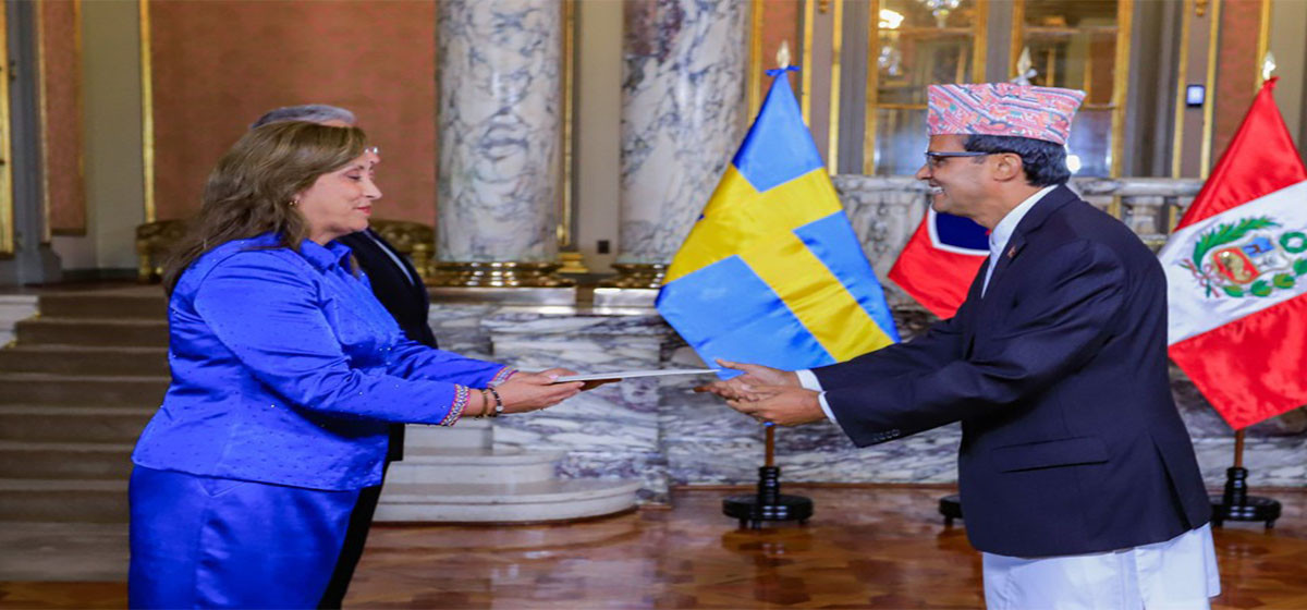 ब्राजिलका लागि नेपालका राजदूत निर्मलराज काफ्लेले आज पेरुका राष्ट्रपति दिना एर्सिलिया बोलुआर्टे जेगारासमक्ष नेपालका गैरआवासीय राजदूतका रूपमा आफ्नो ओहोदाको प्रमाणपत्र प्रस्तुत गरेका छन्।