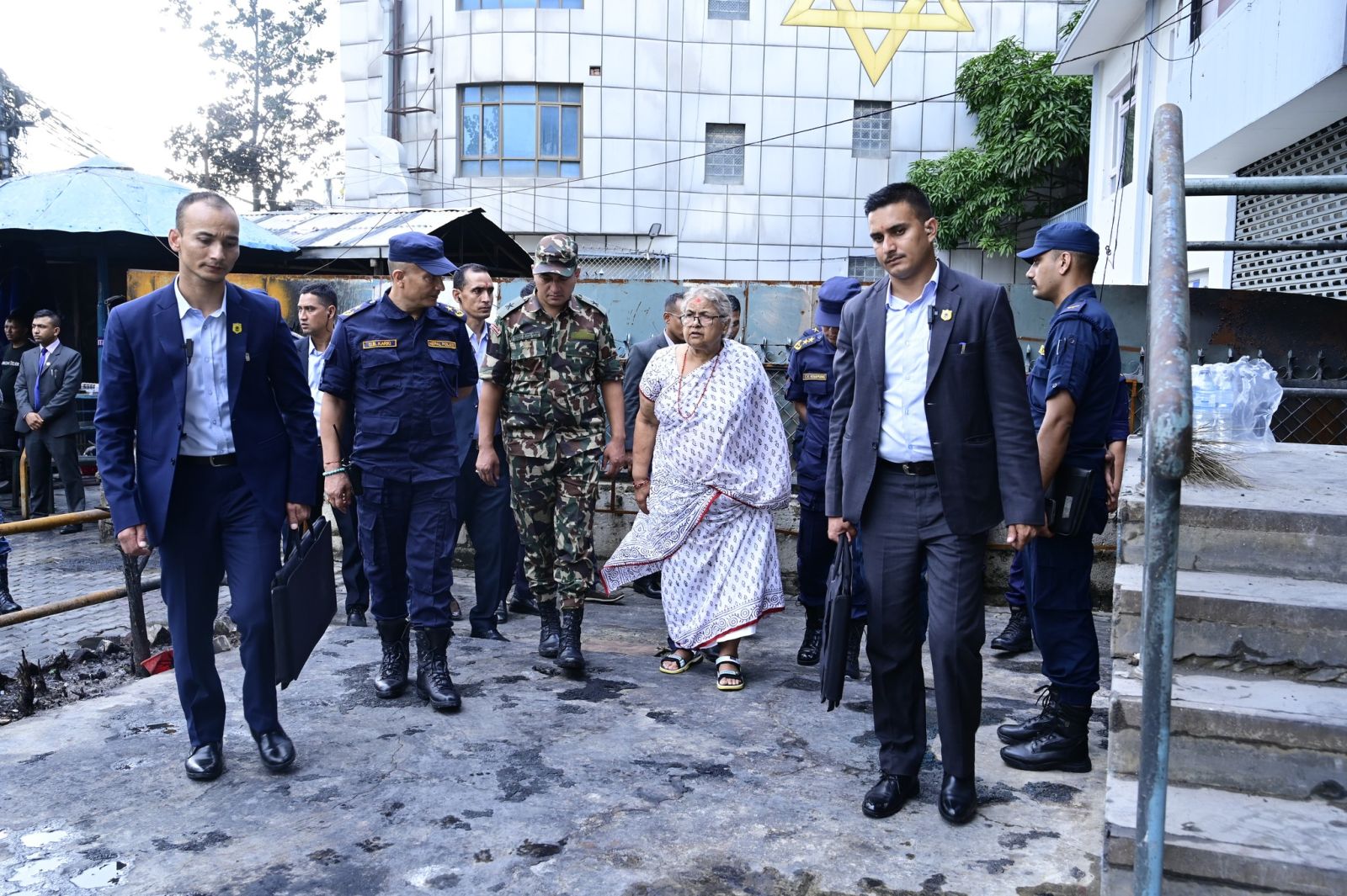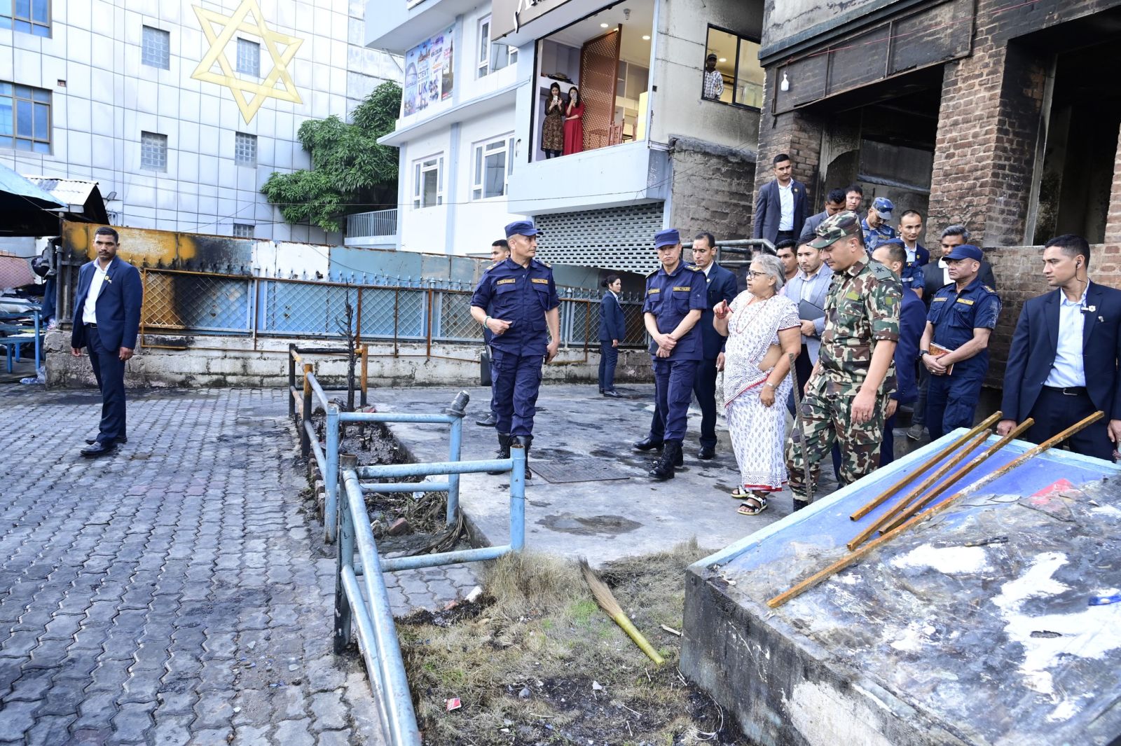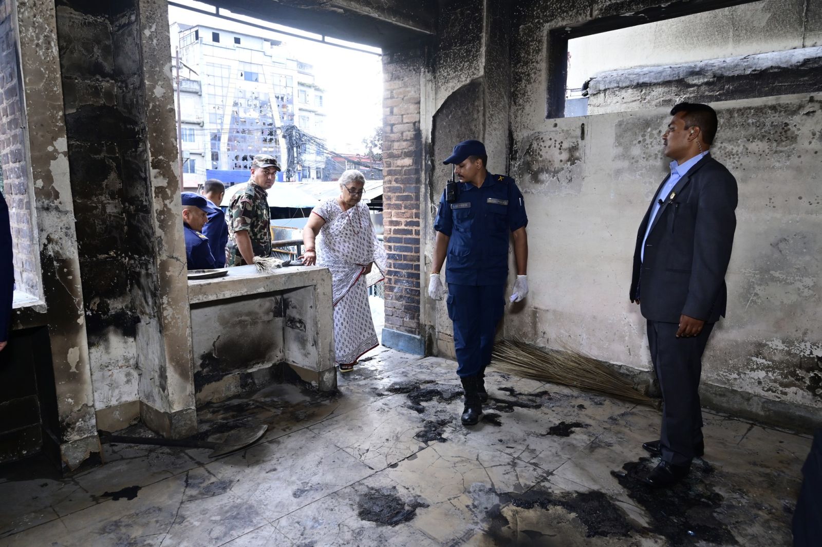प्रधानमन्त्री सुशीला कार्कीले जेन-जी आन्दोलनका क्रममा प्रदर्शनकारीबाट क्षतिग्रस्त भएको महाराजगञ्जस्थित प्रहरी वृत्तको निरीक्षण गरेकी छन्।