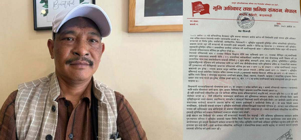 भूमि अधिकार तथा श्रमिक संगठन नेपालका अध्यक्ष इन्द्र तामाङले शुक्रबार एक प्रेस विज्ञप्ति जारी गर्दै सरकारको निर्णयप्रति कडा आपत्ति जनाएका हुन्।