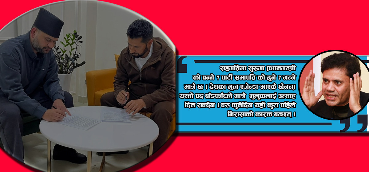 अर्का राजनीतिक विश्लेषक मुमाराम खनाल बालेन–रवि सहमतिमा पदको बाँडफाँट मात्रै देखिएको बताउँछन्। ‘उनीहरूको सहमतिमा सुरुमा प्रधानमन्त्री को बन्ने? पार्टी सभापति को हुने? भन्ने मात्रै छ,’ खनाल भन्छन्, ‘त्यहाँ देशका मूल एजेन्डा आएकै छैनन्। त्यसैले पद बाँडफाँटले मात्रै मुलुकलाई नयाँ उत्साह दिन सक्दैन।’ कुनै दिन यही कुरा पहिले जस्तै घोर निराशाको कारक बन्ने उनले दाबी गरे।
