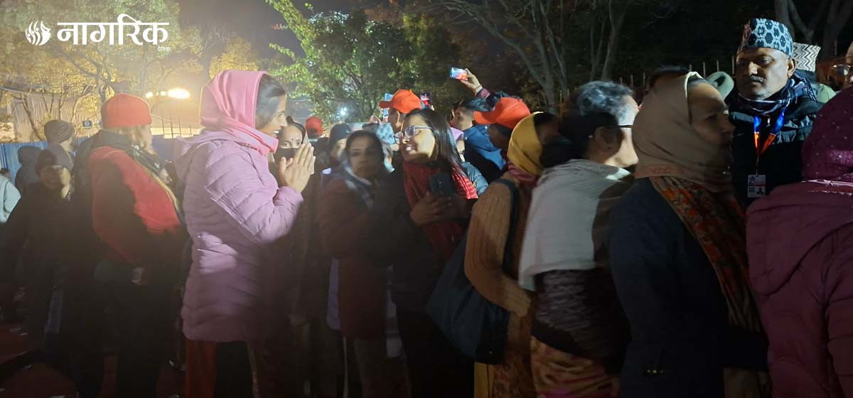 काठमाडौंको भृकुटीमण्डपस्थित मतदान स्थलमा साँझदेखि नै प्रतिनिधिहरूको लामो लाइन छ।