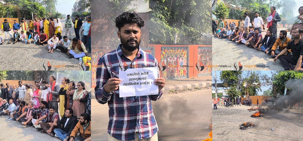 मुख्यमन्त्री सरोजकुमार यादवको नियुक्तिको विरोधमा सात दलका सांसद मधेस भवन अगाडि धर्नामा बसेका छन्। मुख्यमन्त्री यादव नियुक्ति असंवैधानिक रहेको भन्दै नेपाली कांग्रेस, जनता समाजवादी नेपाल, नेकपा माओवादी केन्द्र, एकीकृत समाजवादी, जनमत पार्टी, लोकतान्त्रिक समाजवादी पार्टी नेपाल र नागरिक उन्मुक्ति पार्टीका सांसदहरू सोमबारदेखि आन्दोलनमा उत्रेका छन्।