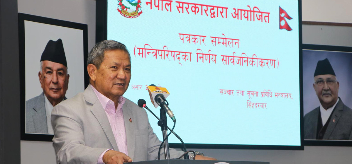 पत्रकार सम्मेलनमा मन्त्री गुरुङले मन्त्रिपरिषद् बैठकको असार ३० गतेको निर्णयसमेत सार्वजनिक गरिएको बताए। आगामी साउन ११ गतेदेखि १३ गतेसम्म इथियोपियामा आयोजना हुने सेकेन्ड युएन फुड सिस्टम्स् समिट स्टक टेक (युएनएफएसएस प्लस फोर) कार्यक्रममा राष्ट्रिय योजना आयोगका सदस्य डा. जयबहादुर टण्डनलाई सहभागी हुन स्वीकृति प्रदान गर्ने सरकारको निर्णय रहेको उनले जानकारी दिए।