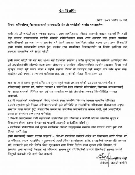 कर्णाली प्रदेशको प्रतिनिधित्व गराउने उद्देश्यले मन्त्री बनाउन लागेपनि उनको चौतर्फी विरोध मन्त्रीको नियुक्ति अनिश्चित बनेको छ।