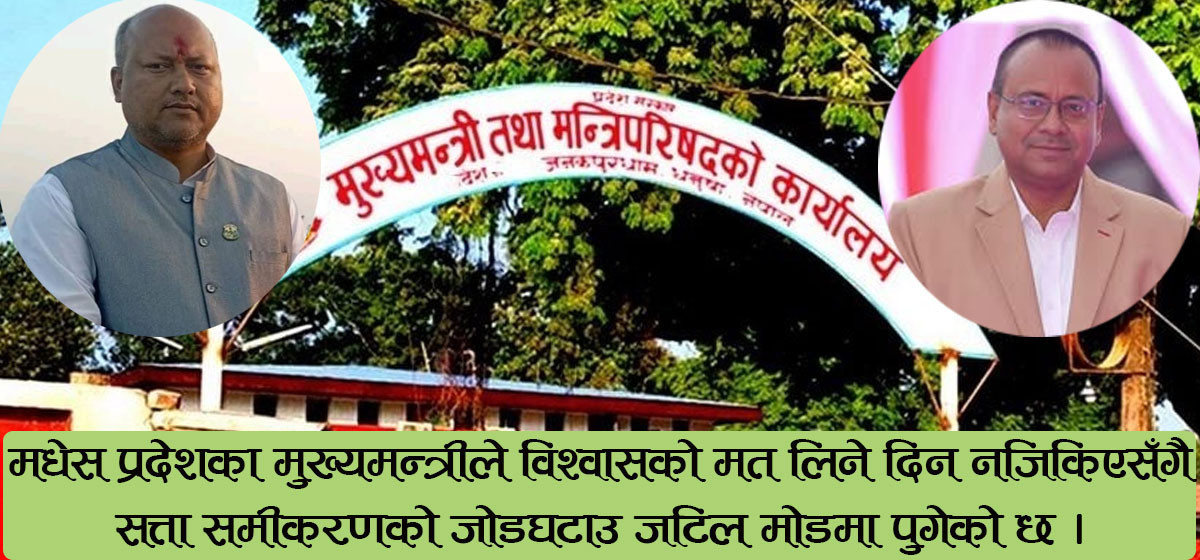 मुख्यमन्त्री सतिशकुमार सिंहलाई आफ्नै पार्टीले मुख्यमन्त्रीबाट फिर्ता बोलाए पनि राजीनामा नदिएर विश्वासको मत लिने अडानमा छन् । दावी पत्रमा जनमतबाट १३ जनाको समर्थन रहेको भनिए पनि मुख्यमन्त्री सिंहले आफ्नै विपक्षमा मतदान गर्लान् ? अर्को तर्फ नेपाली कांग्रेसका सबै २२ सदस्यले तीन दलीय समीकरणमा बन्ने मुख्यमन्त्री यादवको पक्षमा मतदान गर्लान् ? यी विषयले मधेस प्रदेशको आगामी सत्ता समीकरण जटिल तर रोमाञ्चक बनाएको छ ।