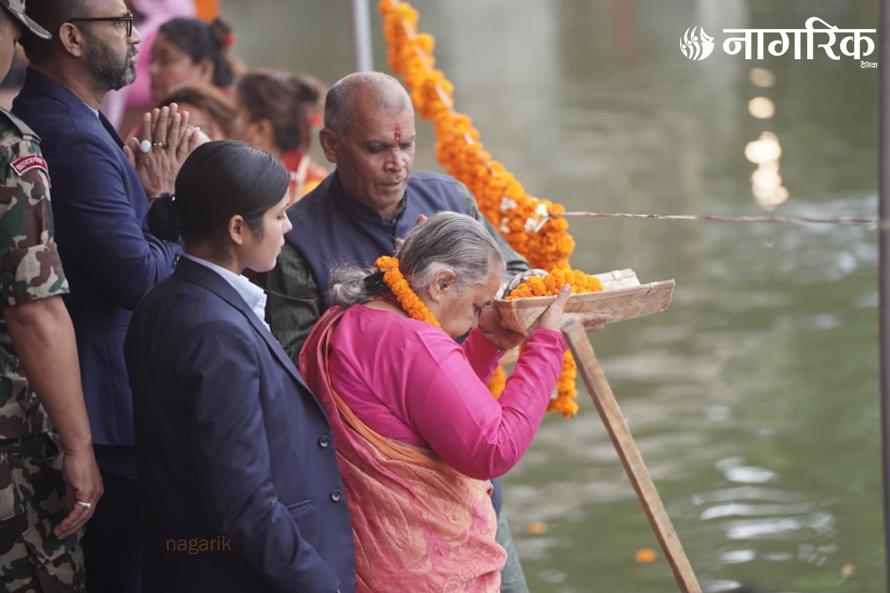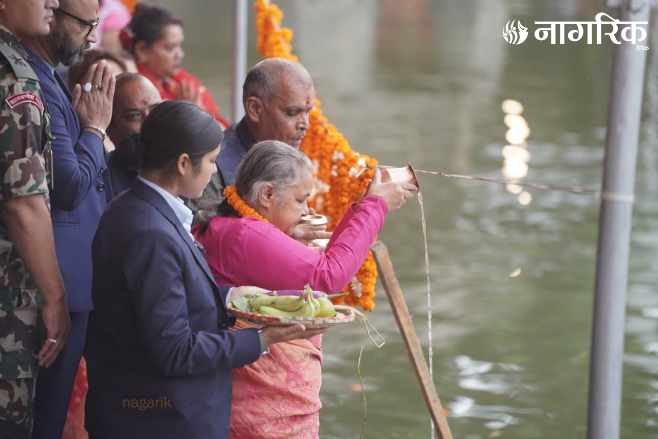प्रधानमन्त्री सुशीला कार्की आज छठ पर्वको अवसरमा कमलपोखरीमा आयोजित विशेष पूजामा सहभागी भएकी छन्। उनले अस्ताउँदो सूर्यलाई अर्घ्य दिएर छठी माताको पूजा आराधना गरिन्।