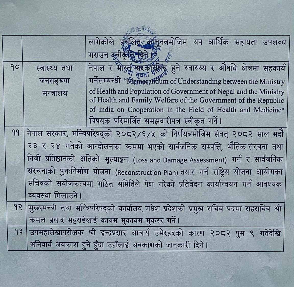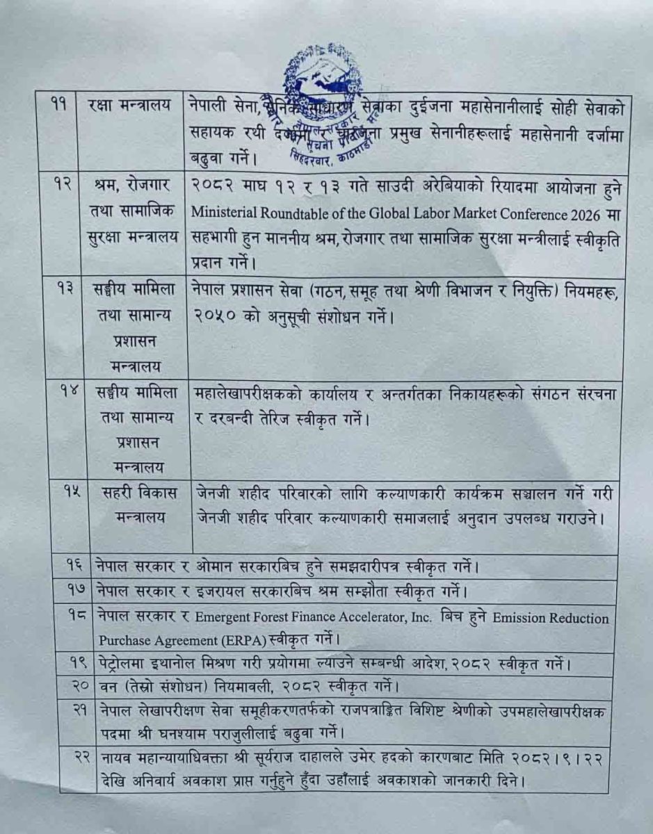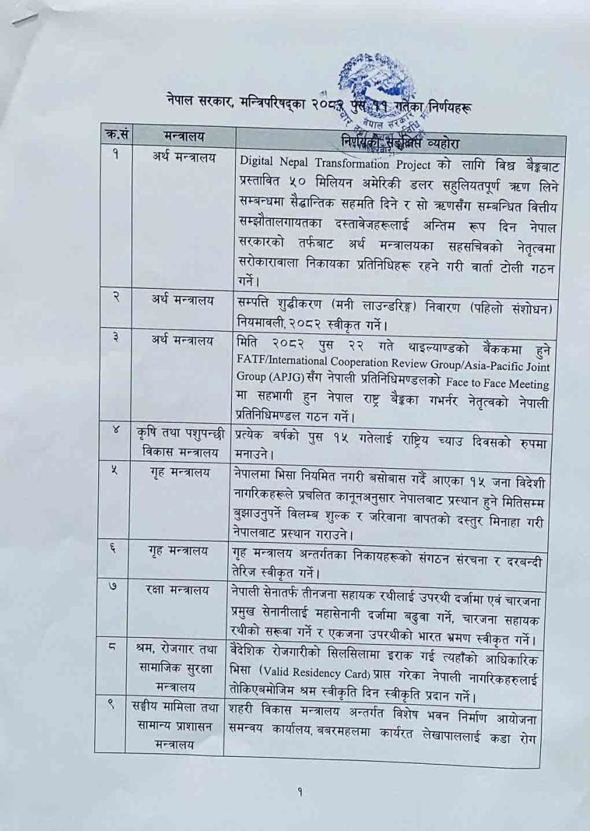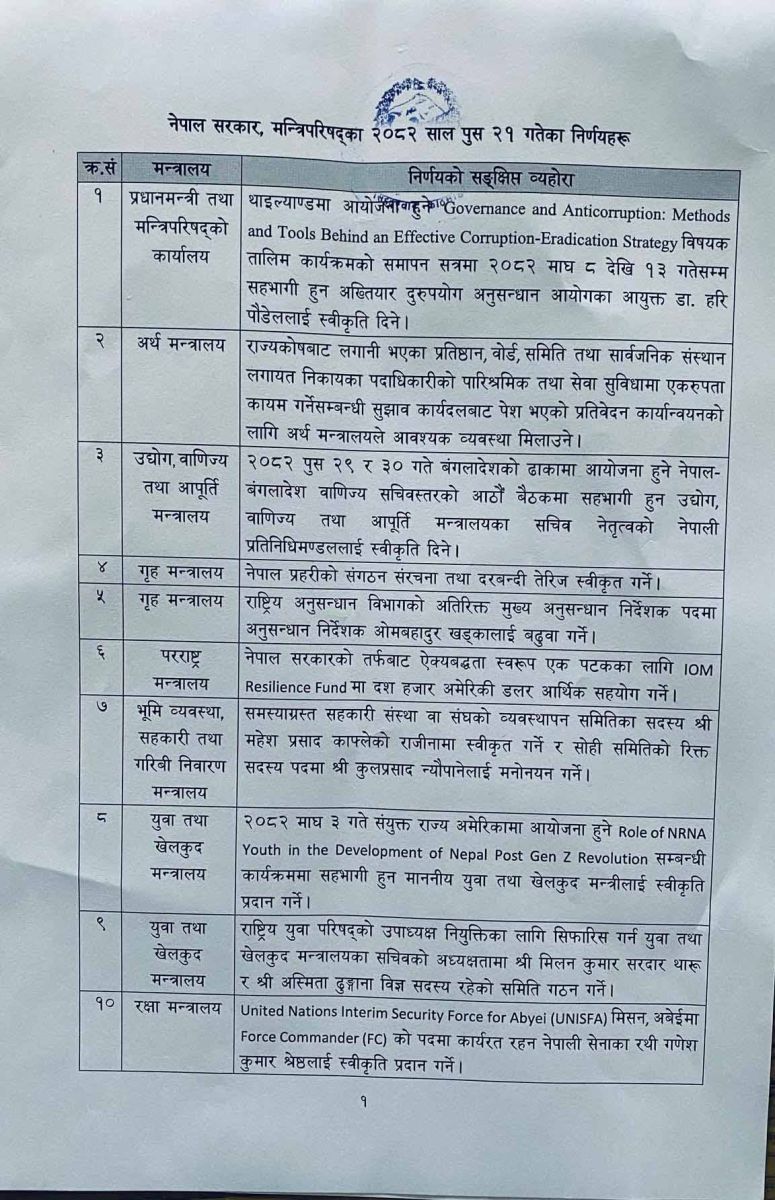 हेर्नुहोस् मन्त्रिपरिषद् बैठकका निर्णयहरू