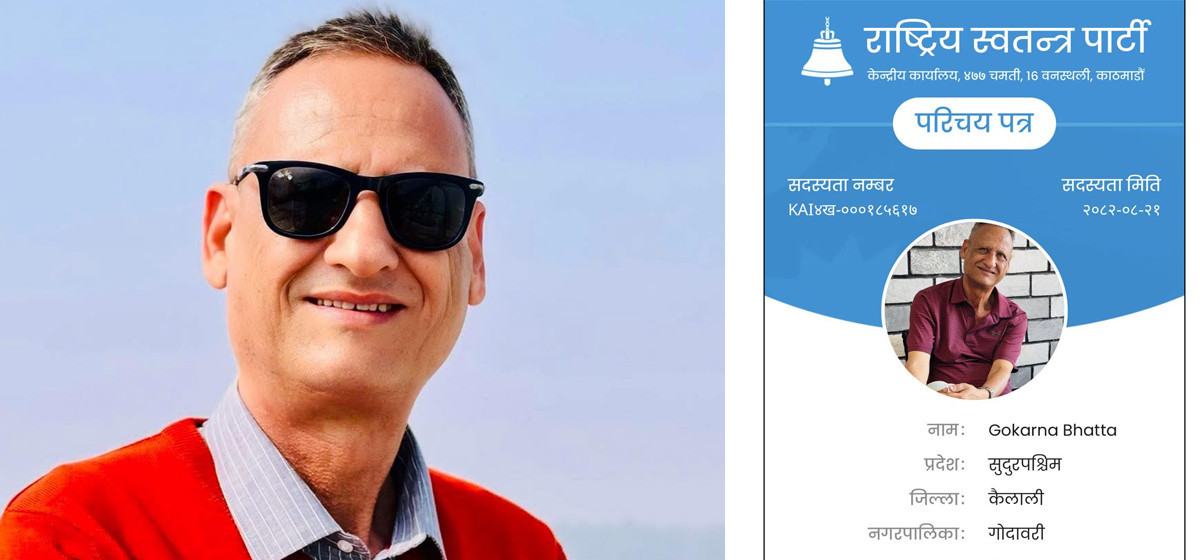 नेकपा एमालेका भर्खरै निर्वाचित उपमहासचिव लेखराज भट्टका भाइ गोकर्ण भट्ट राष्ट्रिय स्वतन्त्र पार्टीमा प्रवेश गरेका छन्। जेन–जी आन्दोलनका क्रममा एमाले छाडेर स्वतन्त्र भएको घोषणा गरेका गोकर्ण आइतबार रास्वपामा प्रवेश गरेका हुन्। केही दिनदेखि नै उनी रास्वपामा प्रवेश गर्ने चर्चा थियो।