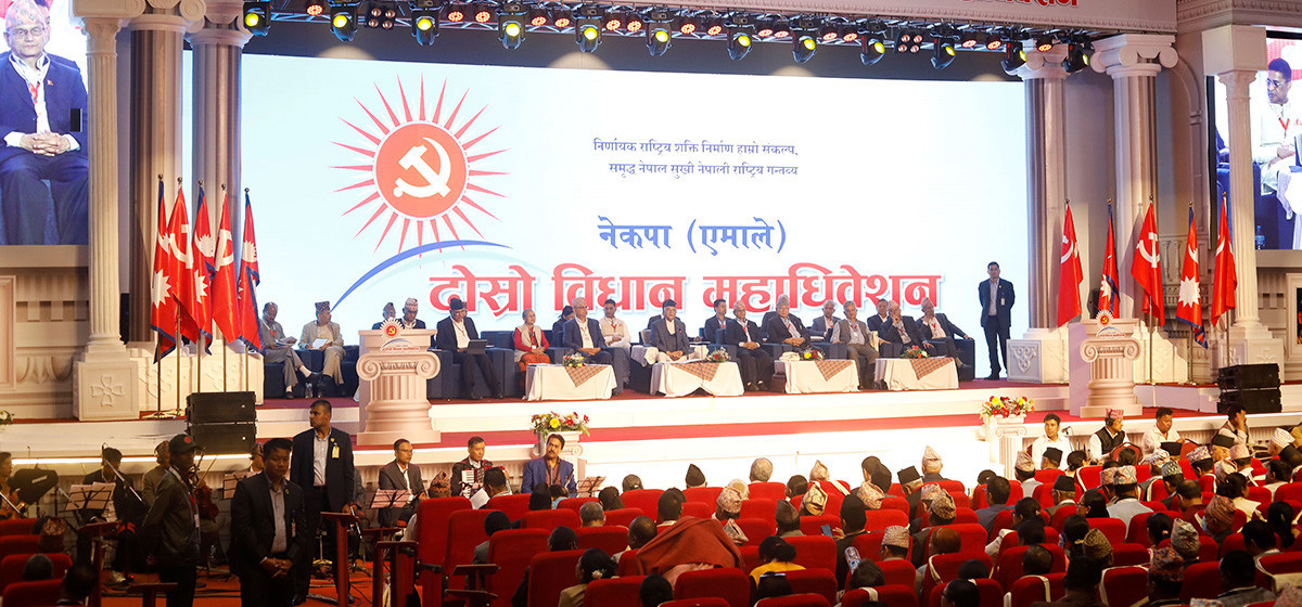 नेपाल कम्युनिष्ट पार्टी (एमाले) को दोस्रो विधान महाधिवेशन सुरु भएको छ। ‘निर्णायक राष्ट्रिय शक्ति निर्माण हाम्रो सङ्कल्प, समृद्ध नेपाल सुखी नेपाली राष्ट्रिय गन्तव्य’ भन्ने मूल नारासहित महाधिवेशन सुरु भएको हो। पार्टी अध्यक्ष एवं प्रधानमन्त्री केपी शर्मा ओलीले आज ललितपुरको सनराइज सभा हलमा महाधिवेशनको उद्घाटन गरेका छन्।