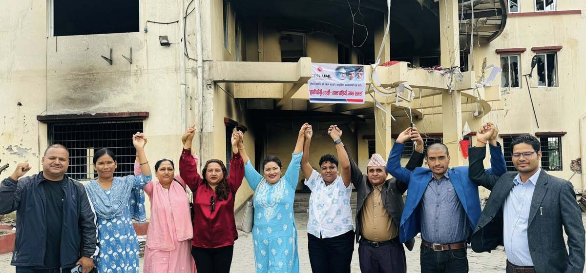 जेन-जी आन्दोलनका क्रममा भएको आगजनीले भग्नावशेषमा परिणत भएको नेकपा एमालेको केन्द्रीय कार्यालय, च्यासलमा कार्यकर्ताहरूले पुनर्निर्माण र पुनर्जागरणको संकल्प व्यक्त गरेका छन्।