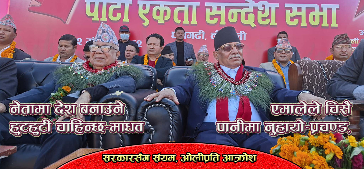 पछिल्लो समय विषम परिस्थितिमा राष्ट्र बचाउन आफूहरू एकताको प्रक्रियामा अघि बढेको उनको भनाई थियो। ‘कम्युनिस्ट र वामपन्थी मात्र एकताबद्ध गरेर पुग्दैन, देशभक्त, लोकतन्त्रवादी शक्ति तथा नेपाली कांग्रेससमेतलाई समेत मोर्चामा ल्याउनु छ’, प्रचण्डले भने, ‘कम्युनिस्टको मात्र कुरा गरेका छैन, गैर कम्युनिस्ट देशभक्त, लोकतन्त्रवादीसँग पनि लगातार कुरा भइरहेको र त्यो सकारात्मक दिशातिर जाँदै छ।’