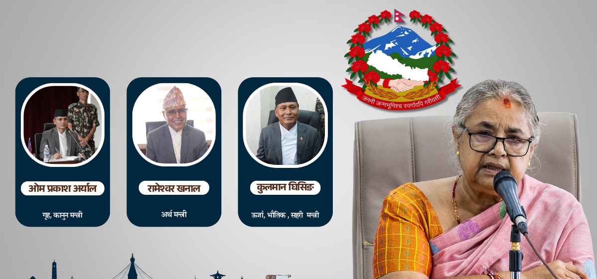 चार सदस्यीय मन्त्रिपरिषद्मा प्रधानमन्त्री कार्कीले राजनीतिक भागबण्डाभन्दा विज्ञतालाई प्राथमिकता दिएकी छन्। अर्थ मन्त्रालयको जिम्मेवारी पूर्व अर्थसचिव रामेश्वर खनाललाई दिइएको छ।