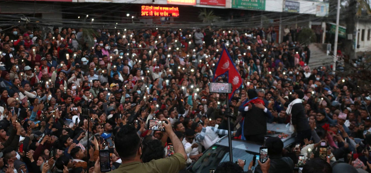 ‘जसरी यो हजारौं मोबाइलको बत्तीले यहाँको रातको अँध्यारोलाई चिरेको छ, ठिक त्यसैगरी तपाईंहरूको अमूल्य मतले देशमा व्याप्त राजनीतिक बेथिति र भ्रष्टाचारको अँध्यारोलाई चिर्नेछ,’ उनले भने।