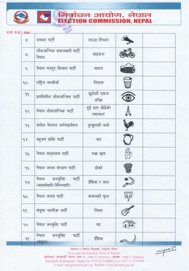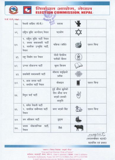 आयोगका प्रवक्ता नारायणप्रसाद भट्टराईद्वारा आज जारी प्रेस विज्ञप्तिमा कुल ६४ दलले सूची बुझाएकामा ५८ निर्वाचन चिह्नमा उम्मेदवारी दिएका छन् ।