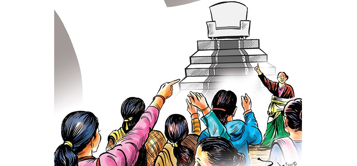 संविधानमा समानुपातिक समावेशी सहभागिताको प्रत्याभूति हुँदाहुँदै दोस्रो स्थानीय तहको निर्वाचनमा सात सय ५३ स्थानीय तहमध्ये २५ वटामा मात्रै महिलाले प्रमुख पदको जिम्मेवारी पाएका छन्। यो संख्या भनेको कुल निर्वाचितको ३.३२ प्रतिशत मात्रै हो। त्यसैगरी प्रतिनिधिसभाको निर्वाचनमा प्रत्यक्षतर्फ दुई सय २५ जना महिला निर्वाचनमा आए पनि नौ जना मात्रै निर्वाचित भए। राष्ट्रपति, उपराष्ट्रपतिजस्तो सर्वोच्च पदमा पुरुष–महिलाको वैकल्पिक सिट र संसद्का दुवै सदन, मेयर र उपमेयर जहाँ दुईमध्ये एक महिला हुनै पर्छ भन्ने व्यवस्थालाई समेत ‘गठबन्धन’ को प्रक्रियाबाट ‘र’, ‘वा’ जस्ता शब्दावलीको प्रयोगले महिलाको राजनीतिक सहभागितालाई पाखा लगाउने काम भएको छ। योगदान र त्यागको कदर नगरी जनमतको दम्भ पालेर गरिने शासनले समाज परिवर्तनमा गतिलो भूमिका नखेलेको इतिहास साक्षी छ।