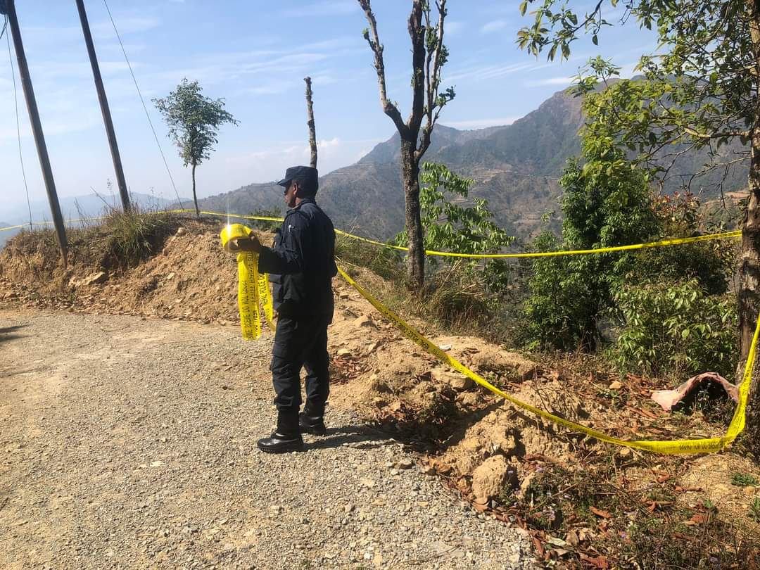 द्वन्दकालमा राखिएको बम पहिरोले ल्याएको हुन सक्ने अनुमान गरिएको छ। बम हो या होइन भन्ने प्रहरीले पुष्टि गरिसकेको छैन।