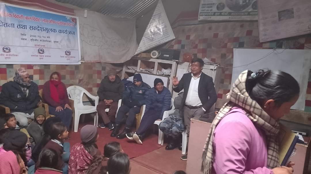 युवा र बालबालिका आपराधिक क्रियाकलापमा संलग्नताका हिसाबले जोखिममा परेको वर्ग भएकाले प्रहरीले चेतनामूलक कार्यक्रमलाई विद्यालयहरूप्रति केन्द्रित गरेको हो। जुम्लाका प्रमुख जिल्ला अधिकारी मुकेश कुमार केसरीले लागु पदार्थ सेवनको असर, प्रभाव र रोकथामबारे सहजीकरण गर्नुहुँदै लागु पदार्थले मानसिक, शारीरिक, आर्थिक, पारिवारिक र सामुदायिक रूपमा असर पर्ने बताए।समाजमा सबै उमेर समूहका मानिसहरु विविध कारणले लागु पदार्थ दुर्व्यसनमा फसेर आफ्नो जीवन, परिवार तथा समग्र समाज र राष्ट्रलाई नै गम्भीर असर पुयाइरहेकोले यसको नियन्त्रणका लागि सबै जुटनु पर्ने बताउँछन्।