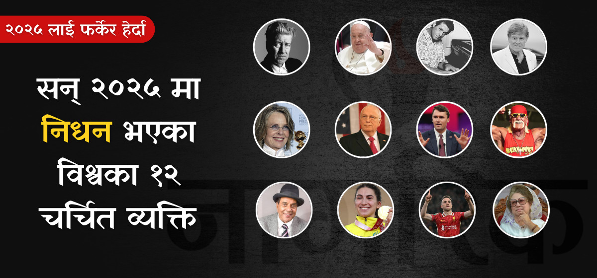 गत वर्ष कला क्षेत्रका धेरैले दुनियाँलाई अलबिदा भनेका थिए। बलिउडका धर्मेन्द्रको निधनले गहिरो शोकमा डुबायो। पोप फ्रान्सिसको निधनले पनि विश्वभरका क्याथोलिक धर्मावलम्बीलाई शोकमा डुबाएको थियो।