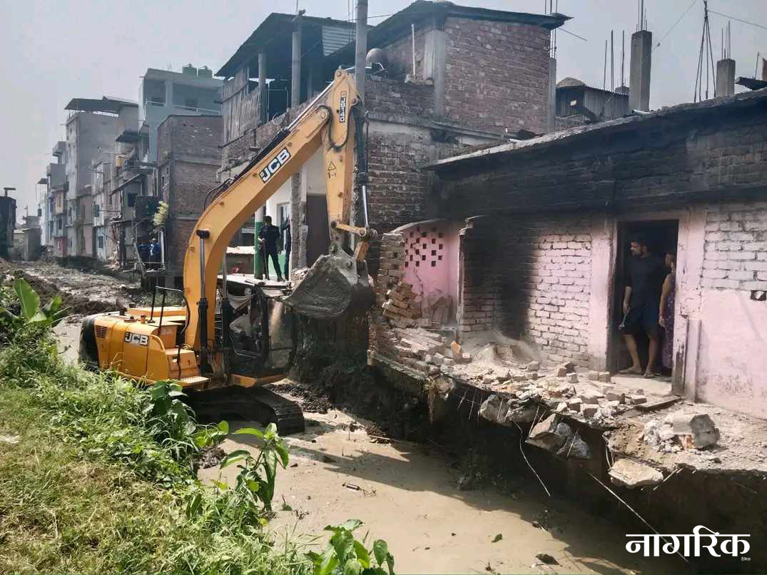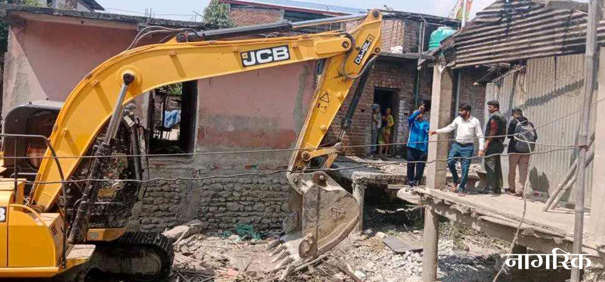 सार्वजनिक जग्गा मिचेर बनाइएका घर–टहरा सुनसरी बराहक्षेत्र नगरपालिकाले भत्काउन थालेको छ।