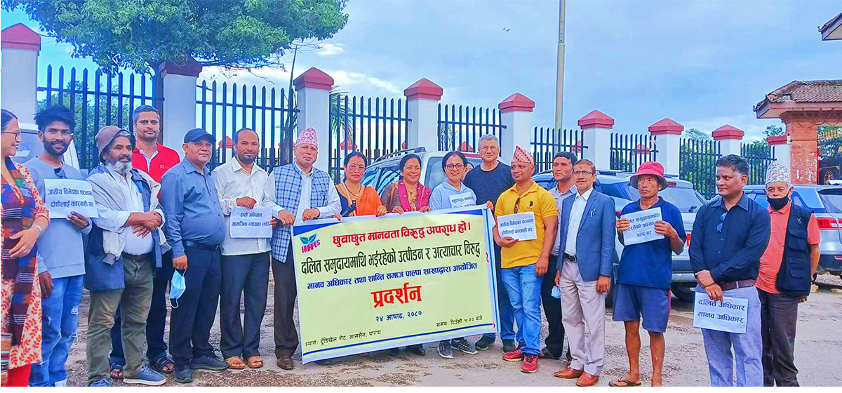 देशका विभिन्न भागमा दलित समुदायमाथि भइरहेको उत्पीडन र अत्याचारविरुद्ध मानव अधिकार तथा शान्ति समाजको आयोजनामा १६ जिल्लामा प्रदर्शन गरिएको छ।