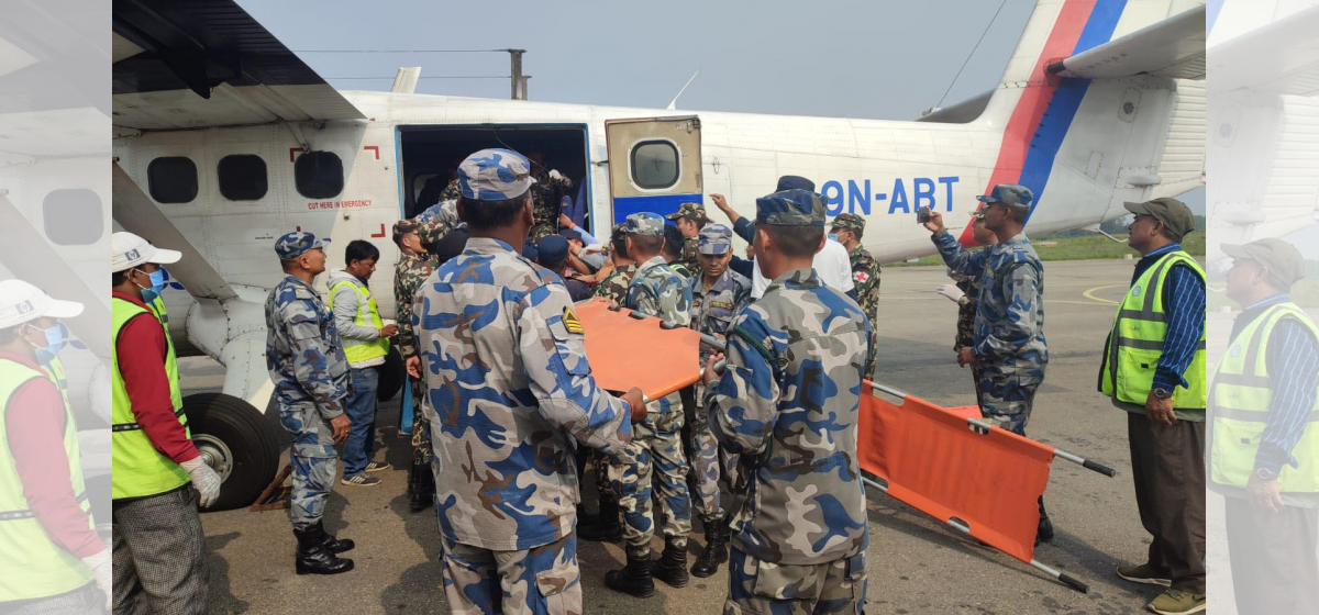 उक्त जहाजले घाइते ११ जना र उनीहरूका ७ जना कुरुवा बोकेर नेपालगन्ज ल्याएको हो। घाइतेलाई नेपाल प्रहरी, नेपाली सेना तथा विभिन्न संस्थाको एम्बुलेन्समार्फत नेपालगन्जस्थित भेरी अस्पताल नेपालगन्ज पुर्याइएको छ।