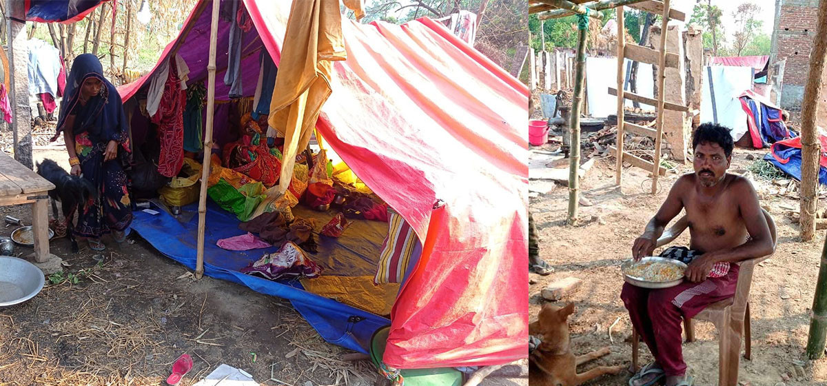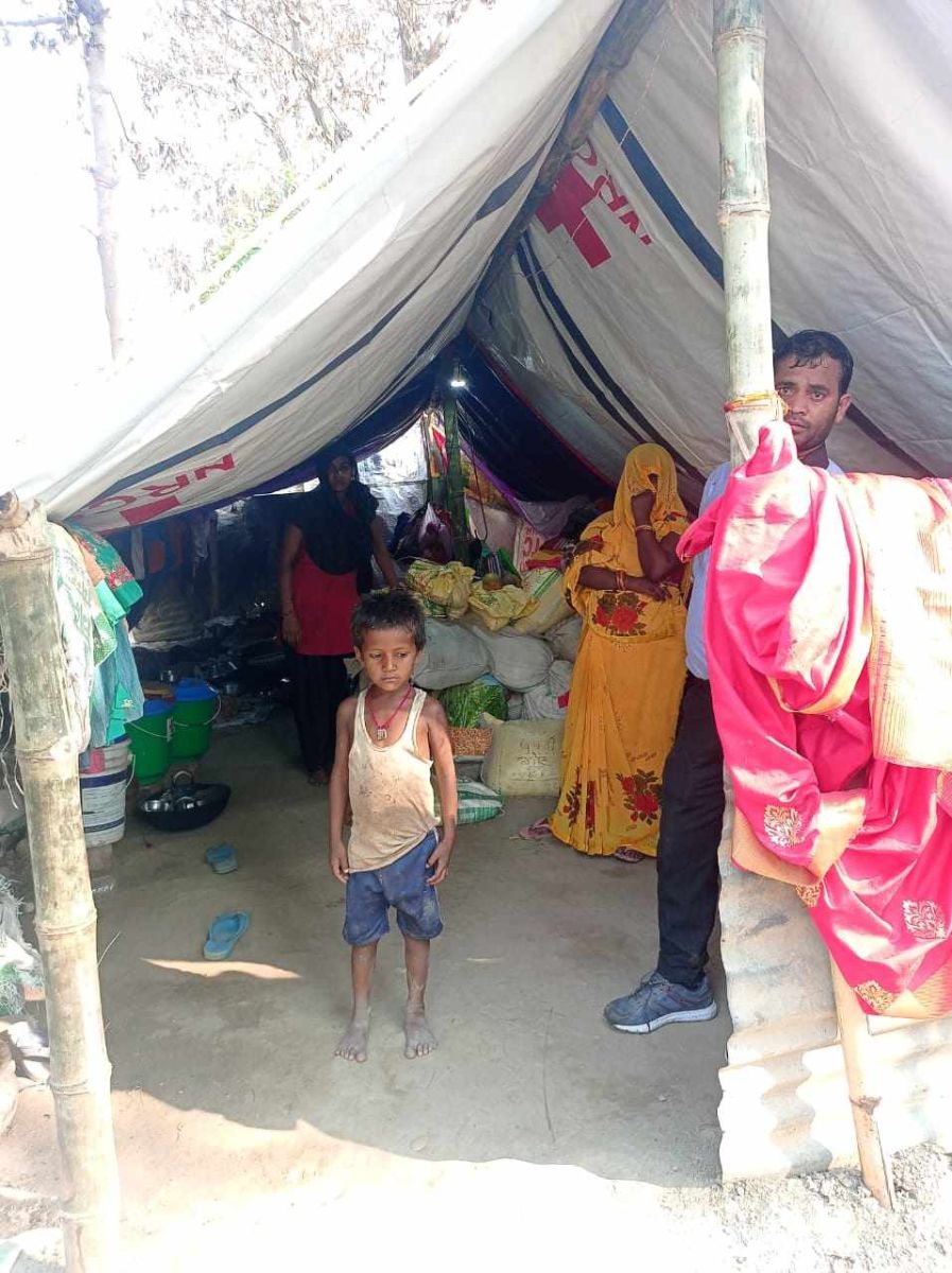 स्थानीय राधादेवी तराईको चर्को घाममा मात्र त्रिपालको साहारमा दिन र रात कटाउन बाध्य छिन्। त्यही माथि गर्भवती छिन् उनी। उनका पीडा त अनेकौँ छन्। न त घाममा ओत लाग्न गतिलो ठाउँ छ न त पानी पर्दा । जब उनी आकाशमा बादल देख्छिन् तब उनलाई कहाँ ओत लाग्ने भन्ने चिन्ताले सताउँछ थाल्छ।