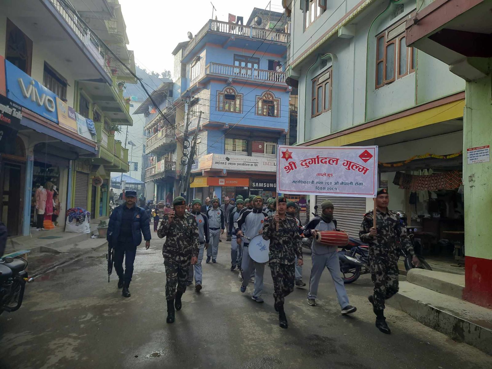 महाशिवरात्रि तथा २६२ औं सेना दिवसका अवसरमा ताप्लेजुङस्थित नेपाली सेनाको दुर्गादल गुल्मले बुधबार चण्डेश्वर धाम सिद्धिडाँडा पुगेर सलामी अर्पण गरेको छ।