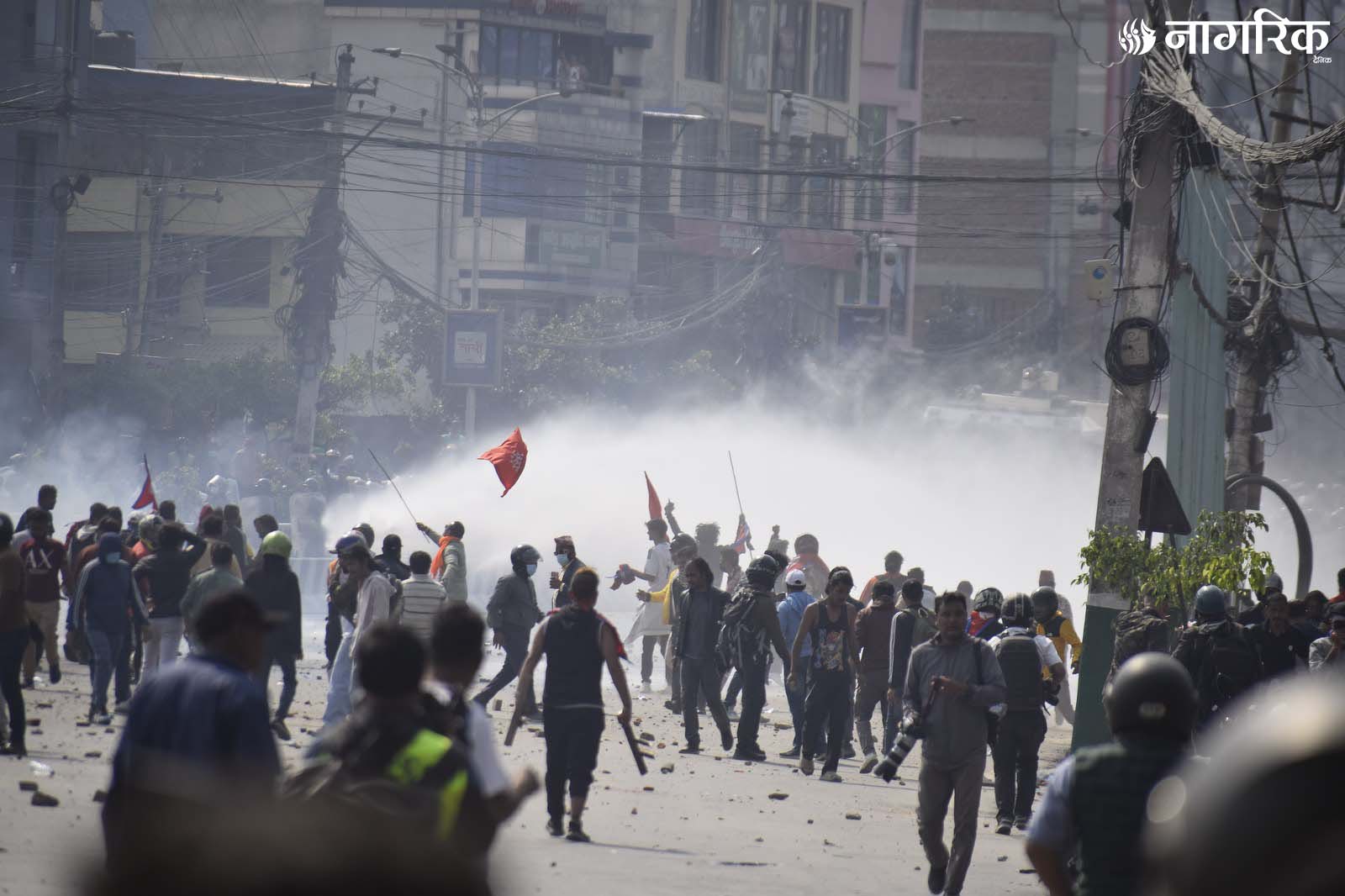 राजावादी समूहले निषेधित क्षेत्र तोड्न खोजेपछि स्थिति झन् तनावपूर्ण बनेको हो।