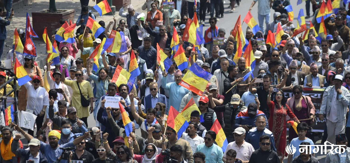 राष्ट्रिय प्रजातन्त्र पार्टी (राप्रपा) ले शुक्रबार राजधानीमा प्रदर्शन गरेको छ।