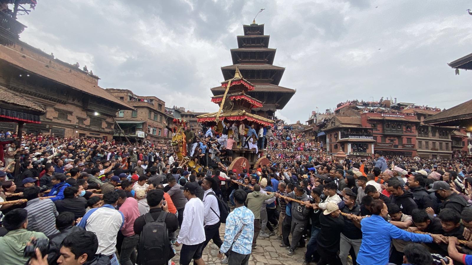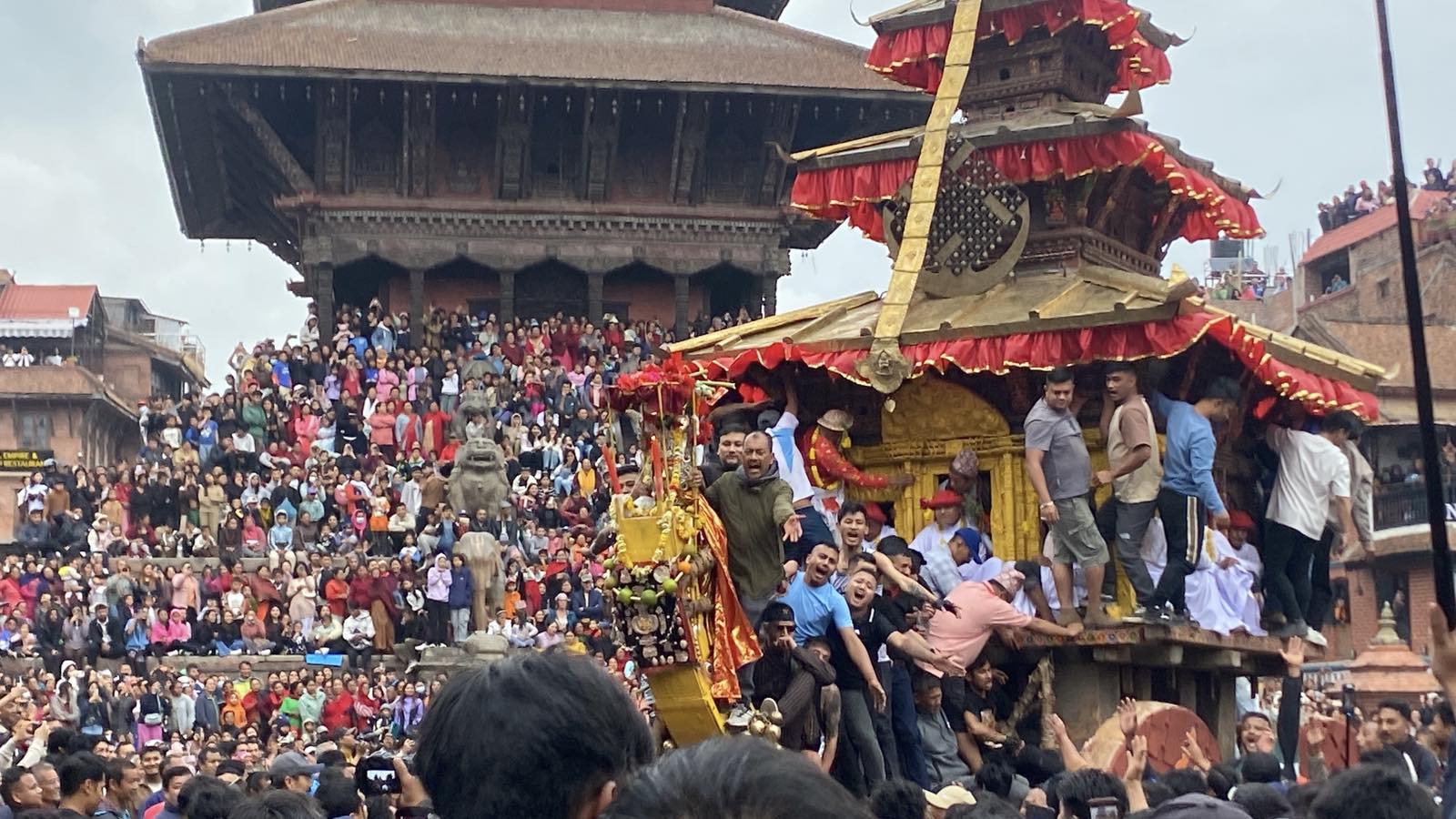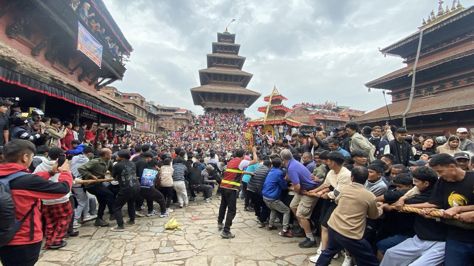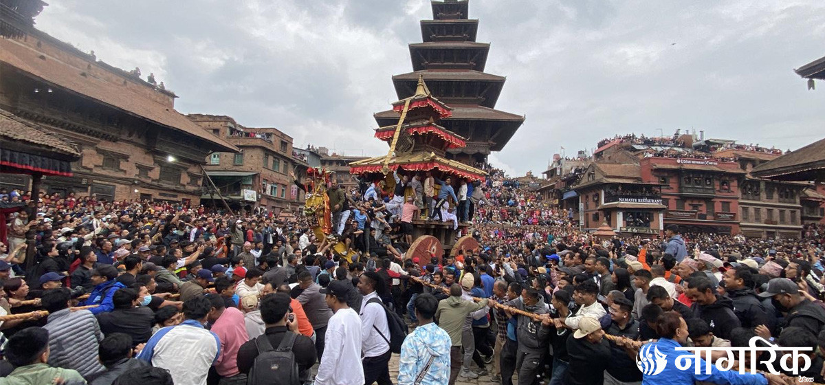 जात्रा आज साँझ टौमढीस्थित ङातापोल (पाँचतल्ले मन्दिर) अगाडिबाट भैल खः (भैरवनाथको रथ) तानातान गर्दै सूरु भएको हो ।