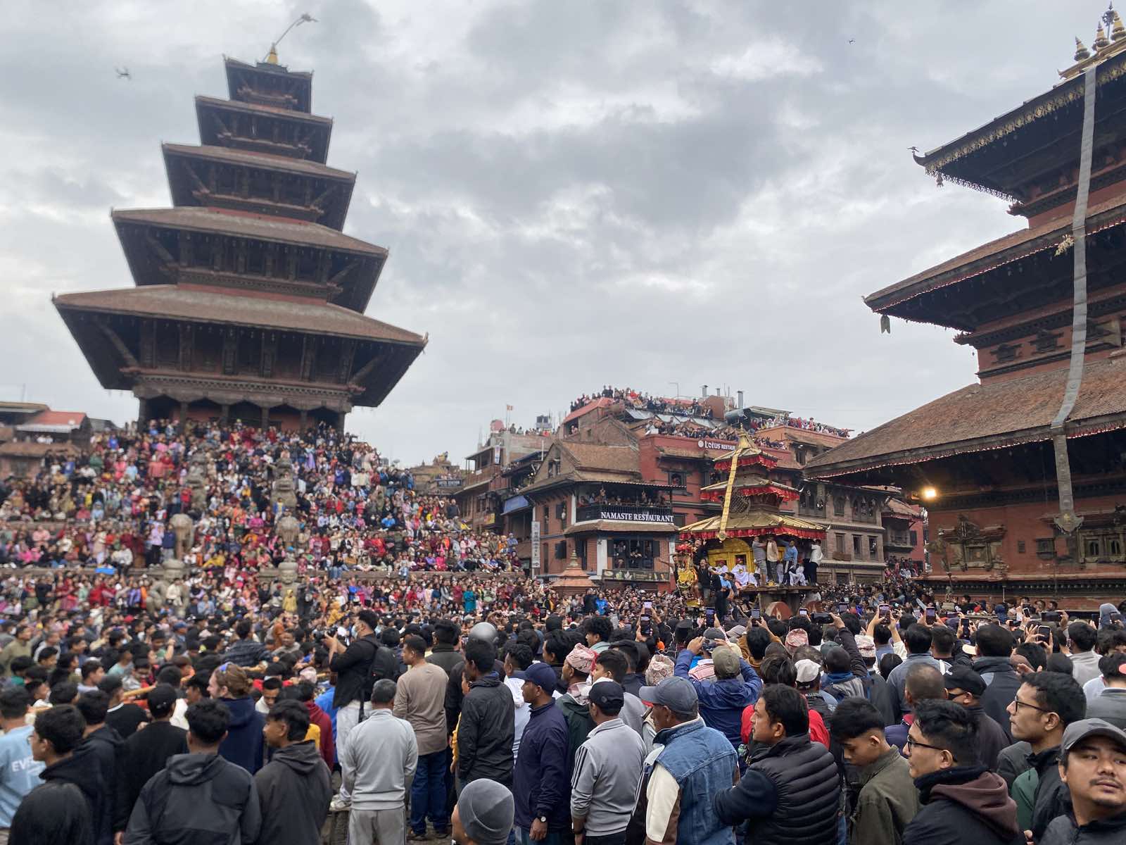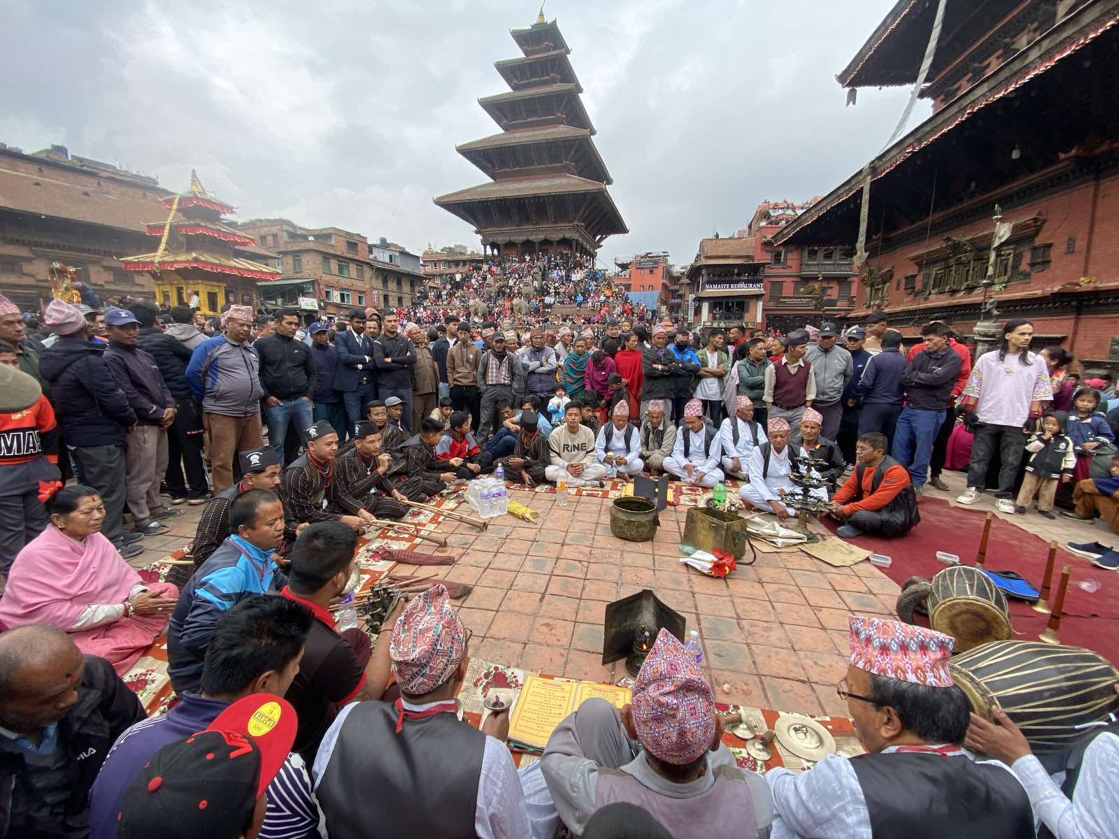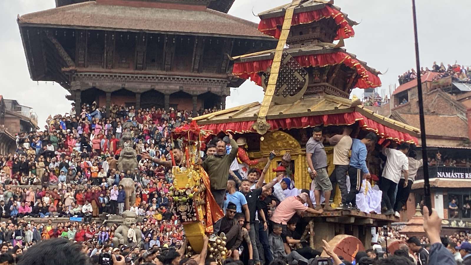 जात्रा आज साँझ टौमढीस्थित ङातापोल (पाँचतल्ले मन्दिर) अगाडिबाट भैल खः (भैरवनाथको रथ) तानातान गर्दै सूरु भएको हो ।