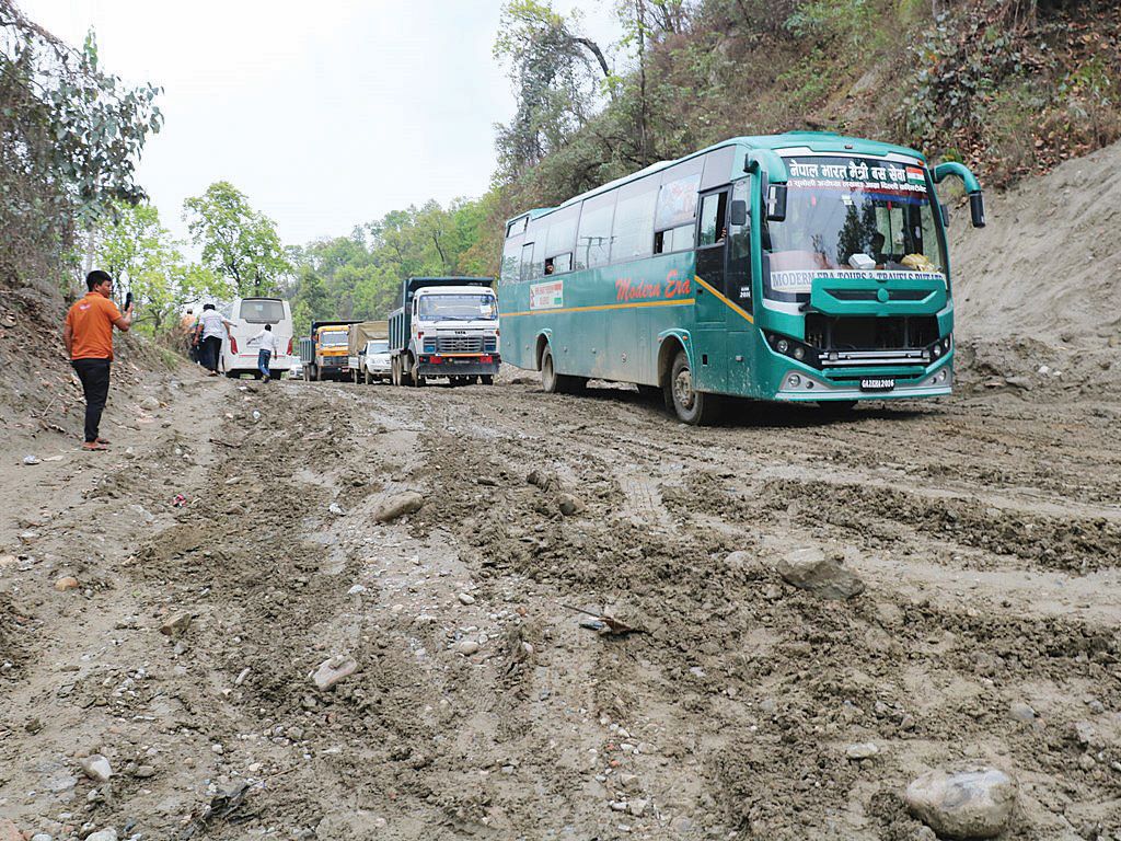 नारायणगढ–बुटवल सडकखण्ड निर्माणाधीन छ। यो सडकमा सवारी गुड्न त्यति सहज छैन। ढुंगानाजस्तै काठमाडौं–दिल्ली गाडी चलाउँदै आएका राधेश्याम बरालले पनि सडकको अवस्थाले गर्दा हैरानी खेप्नुपरेको छ। ‘ठाउँठाउँमा खाल्डाखुल्डी छन्। यात्रुले डाइभरले झ्याँक्यो भनेर रिसाउनुहुन्छ,’ यात्रु लिएर दिल्लीतर्फ हिँडेका अवस्थामा जाममा भेटिएका बरालले भने, ‘सडक साँघुरो छ। त्यसमाथि धुलो र हिलोले हैरानी छ हजुर। नयाँ गाडी बिग्रिसक्यो।’