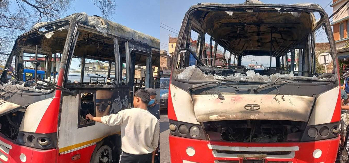 काठमाडौंको चन्द्रागिरी नगरपालिका–१५, ढुङ्गेअड्डा पिपलबोटमा बिहीबार एक सार्वजनिक बसमा आगलागी भएको छ। आगलागी नियन्त्रणमा आइसकेको प्रहरीले जनाएको छ।