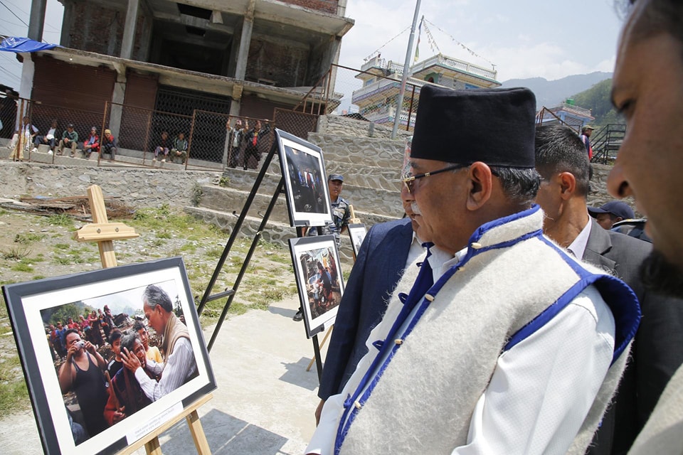 पुनर्निर्माणका केही कार्य सम्पन्न भए पनि जनताले अझै पनि शिक्षा, स्वास्थ्य, खानेपानी, सडक, पूर्वाधार, रोजगारजस्ता विषयमा अनेकौँ चुनौती सामना गरिरहेको अनुभव गरेको दाहालले लेखेका छन्। यस्तै विगतमा एकताबद्ध भएर विपत्तिको सामना गर्न सकेको स्मरण गर्दै दाहालले अब पनि साझा उद्देश्यका साथ विकास र समृद्धिको लक्ष्य हासिल गर्न सक्ने दृढ विश्वास व्यक्त गरेका छन्। ‘नेपाल भूकम्पीय दृष्टिले उच्च जोखिममा रहेको मुलुक हो। अबका दिनमा दीर्घकालीन नीति, योजना र संरचनात्मक तयारीसहित अगाडि बढ्न आवश्यक छ,’ दाहालले लेखेका छन्। दाहालले बारपाक पुगेर भूकम्पको क्षति र पुनर्निर्माण झल्काउने फोटो प्रदर्शनीको उद्घाटन र अवलोकन गरेका छन्।