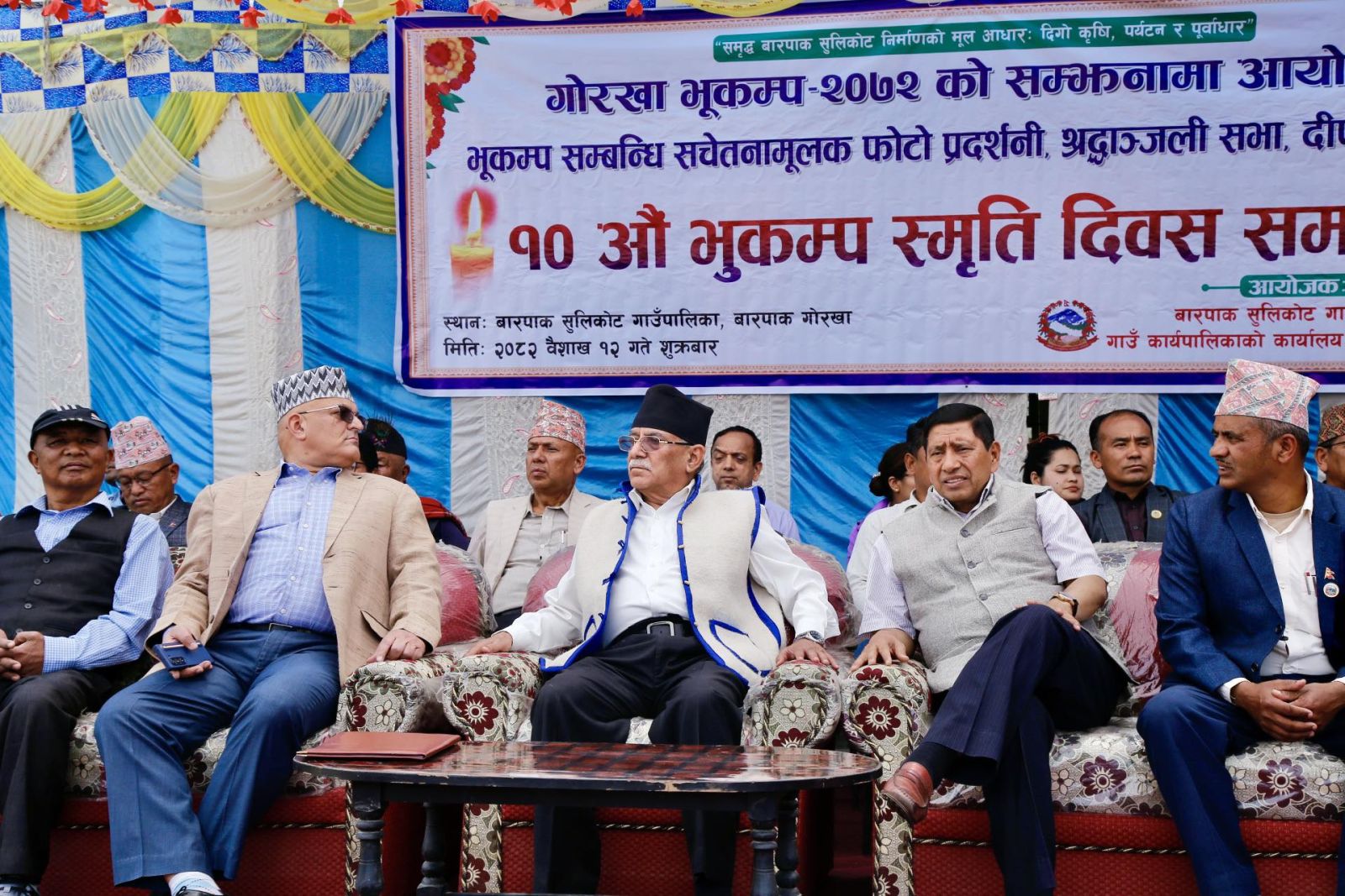 दश वर्षअघि २०७२ वैशाख १२ गते अर्थात् आजकै दिन नेपालमा महा विनासकारी भूकम्प गएको थियो। दिउँसो ११ः५६ बजे गोरखाको बारपाक केन्द्रबिन्दु भएर गएको ७ दशमलव ६ रेक्टर स्केलको भूकम्पको प्रभाव आजसम्म पनि कायम छन्। भूकम्प गएकै दिन पारेर आज नेकपा माओवादी केन्द्रका अध्यक्ष पुष्पकमल दाहाल बारपाक पुगेका छन्।