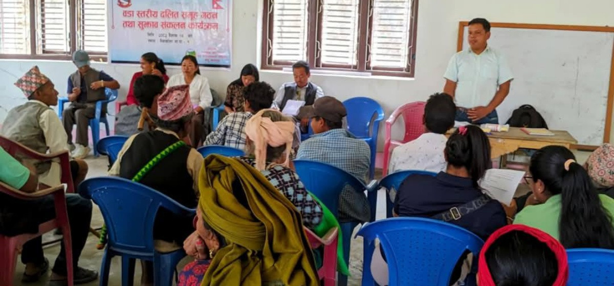 मैवाखोला गाउँपालिकाले दलित सशक्तिकरणका लागि अध्यक्ष अक्षयकोष सञ्चालन गर्न वडास्तरमा सुझाव संकलन सुरु गरेको छ। शुक्रबार वडा नं. १ बाट सुझाव संकलन थालिएको गाउँपालिकाका प्रवक्ता तथा वडा नं. १ का वडाध्यक्ष चन्द्रकुमार तामाङले बताए। उनका अनुसार वडा नं. १ मा ६३ दलित घरपरिवार सुझाव संकलनमा सहभागी भए।