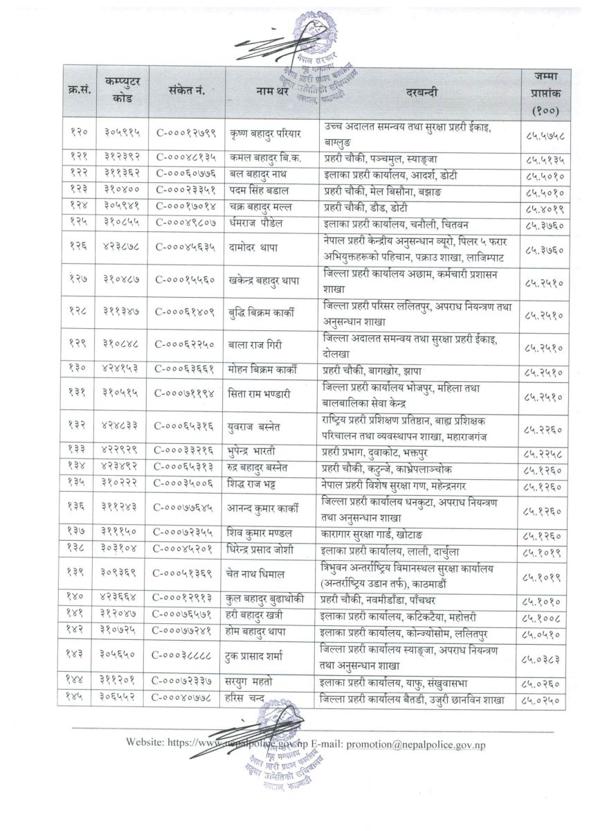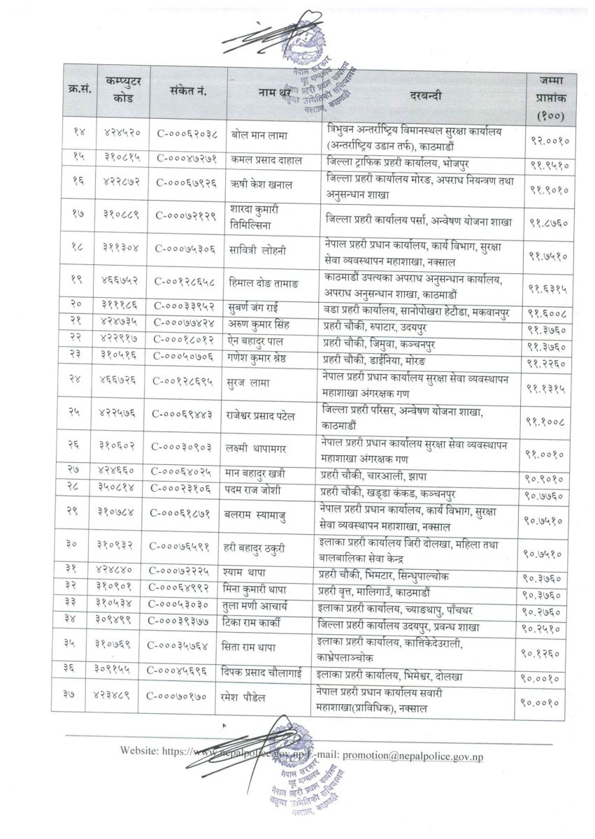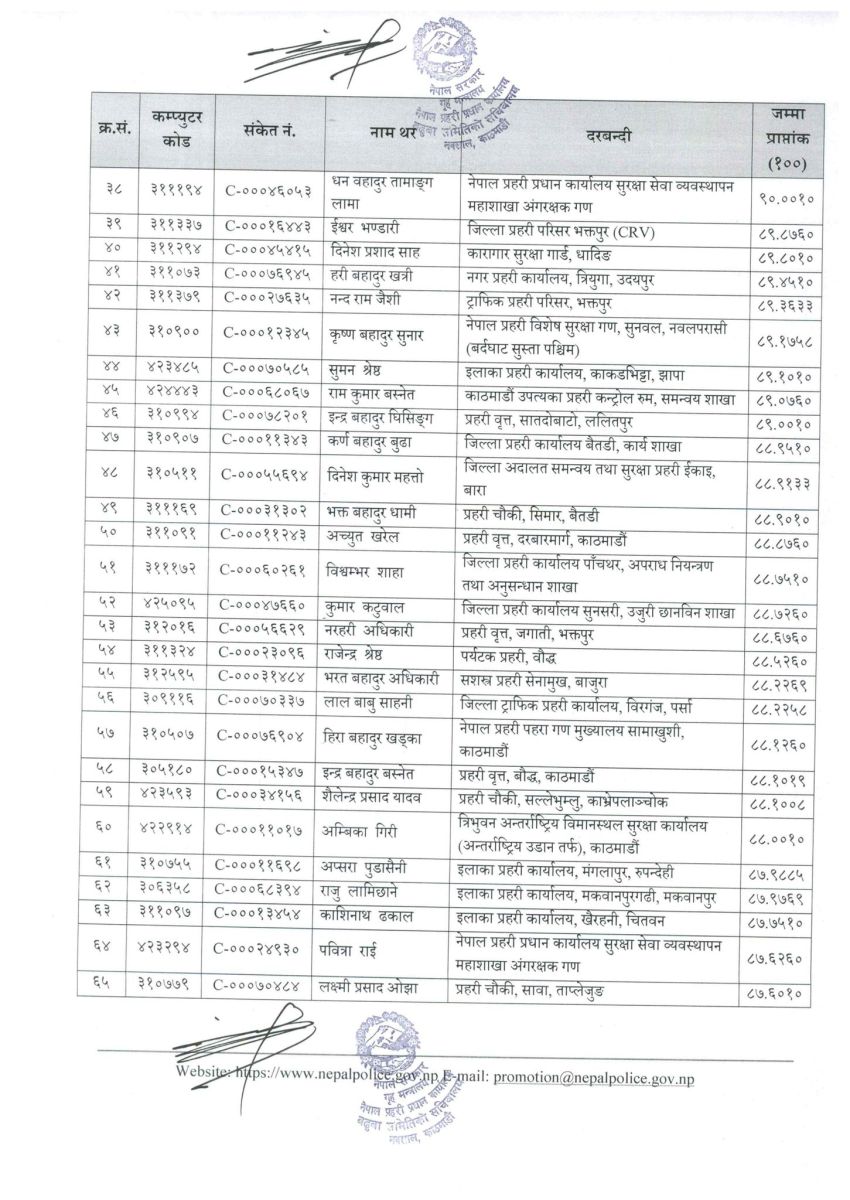 सिफारिस सूचीमा रहेका प्रहरी सहायक निरीक्षकहरूको नामवलीसहितको विवरण सम्बन्धित सबैको जानकारीका लागि प्रकाशित गरिएको छ।
