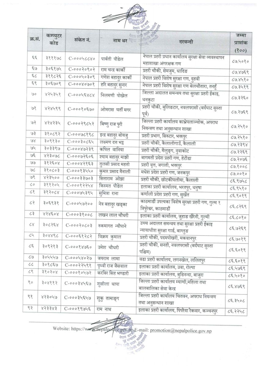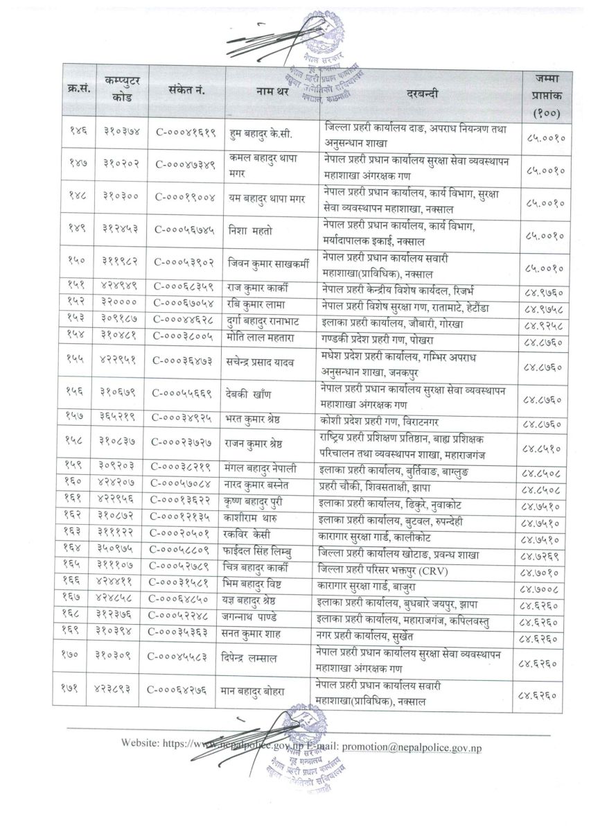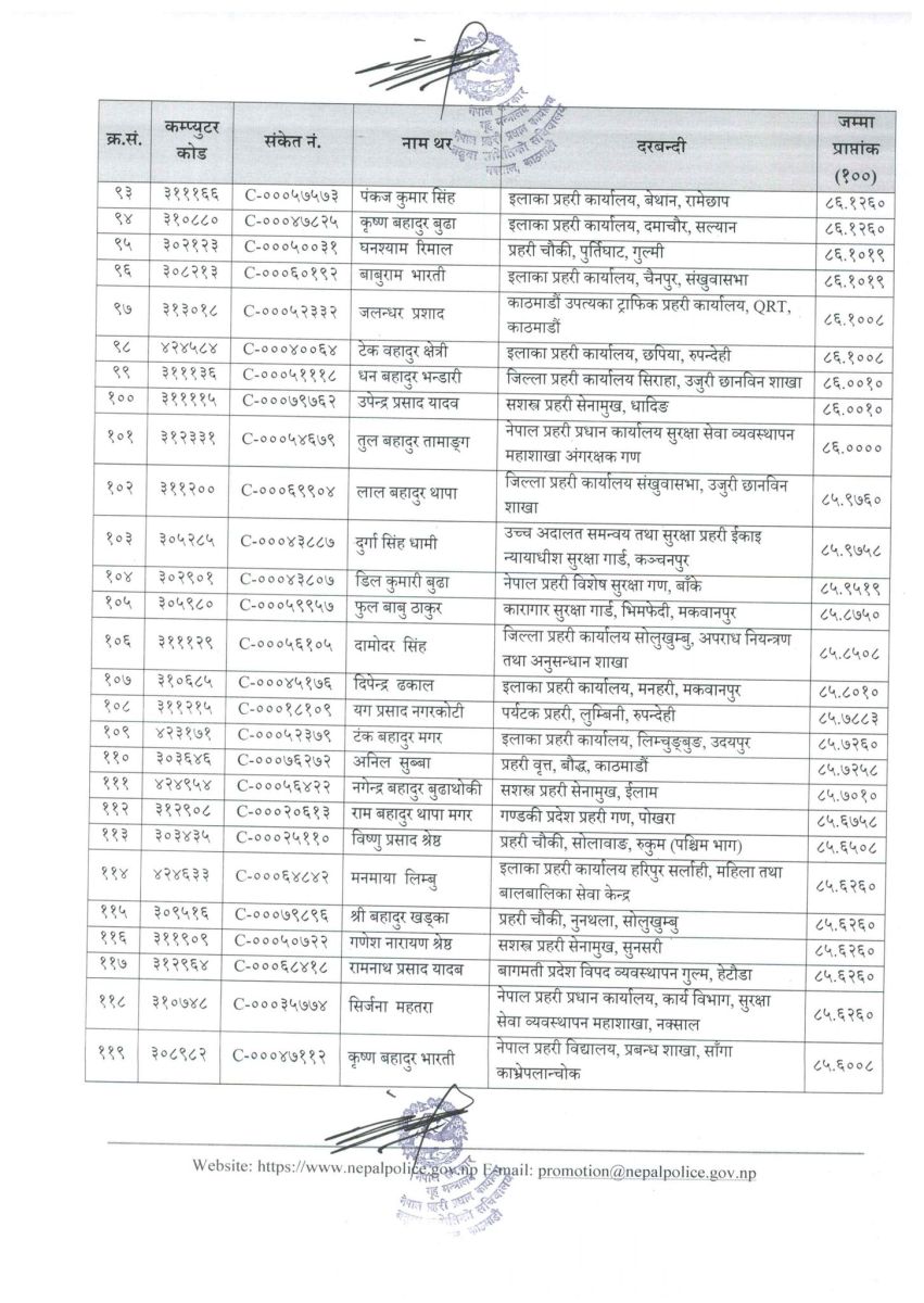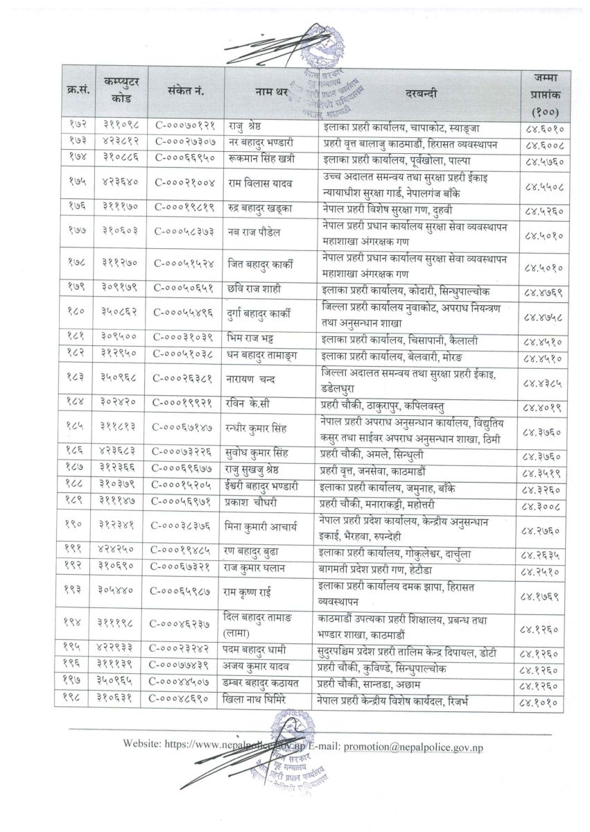 सिफारिस सूचीमा रहेका प्रहरी सहायक निरीक्षकहरूको नामवलीसहितको विवरण सम्बन्धित सबैको जानकारीका लागि प्रकाशित गरिएको छ।