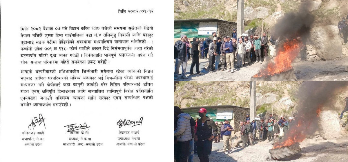 गत वैशाख ७ गते वीरेन्द्रनगर सुर्खेतको रेडियो नेपाल अगाडि कर्णाली प्रदेश ००१ ख ०९१५ नम्बरको मध्यपश्चिम यातायात प्रालिको गाडीले बुढालाई ठक्कर दिएको थियो। आइतबार बिहान साढे ६ बजे जुम्ला जान चोकमा निस्किएका बुढालाई विपरीत दिशाबाट आएको गाडीले ठक्कर दिएको थियो। सङ्घर्ष समितिका संयोजक शाहीले अस्पतालमा मृत्यु भएको भनिए पनि घटनास्थलमै मृत्यु भएको दाबी गरे। ‘हामीलाई झुक्काउन अस्पतालमा मरेको भनियो, त्यो सत्य होइन,’ उनले आक्रोश व्यक्त गरे।