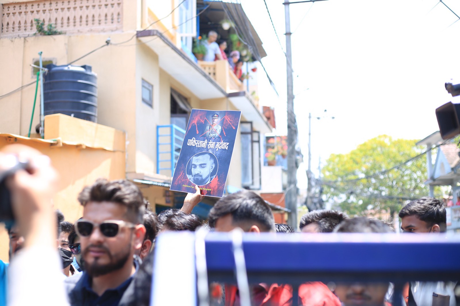 भारत काश्मीरको पाहलगममा भएको आतङ्ककारी हमलामा नेपाली युवा सुदीप न्यौपानेको हत्याको विरोधमा आज काठमाडौँमा प्रदर्शन गरिएको छ ।