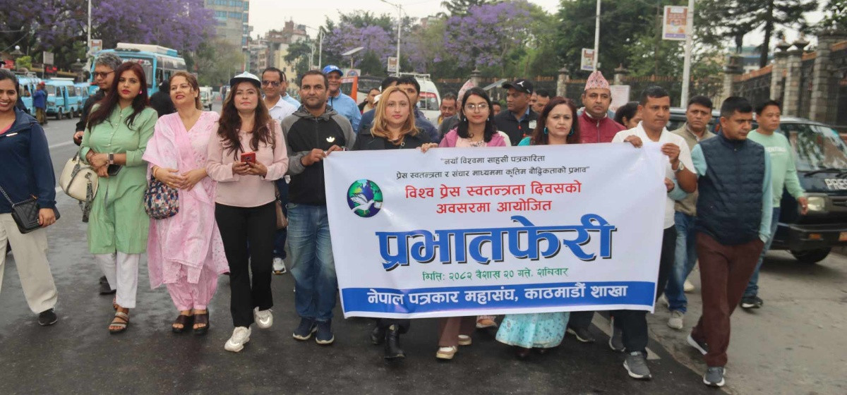 विश्व प्रेस स्वतन्त्रता दिवसको अवसरमा नेपाल पत्रकार महासंघ काठमाडौं शाखाले आज प्रभातफेरी आयोजना गरेको छ।