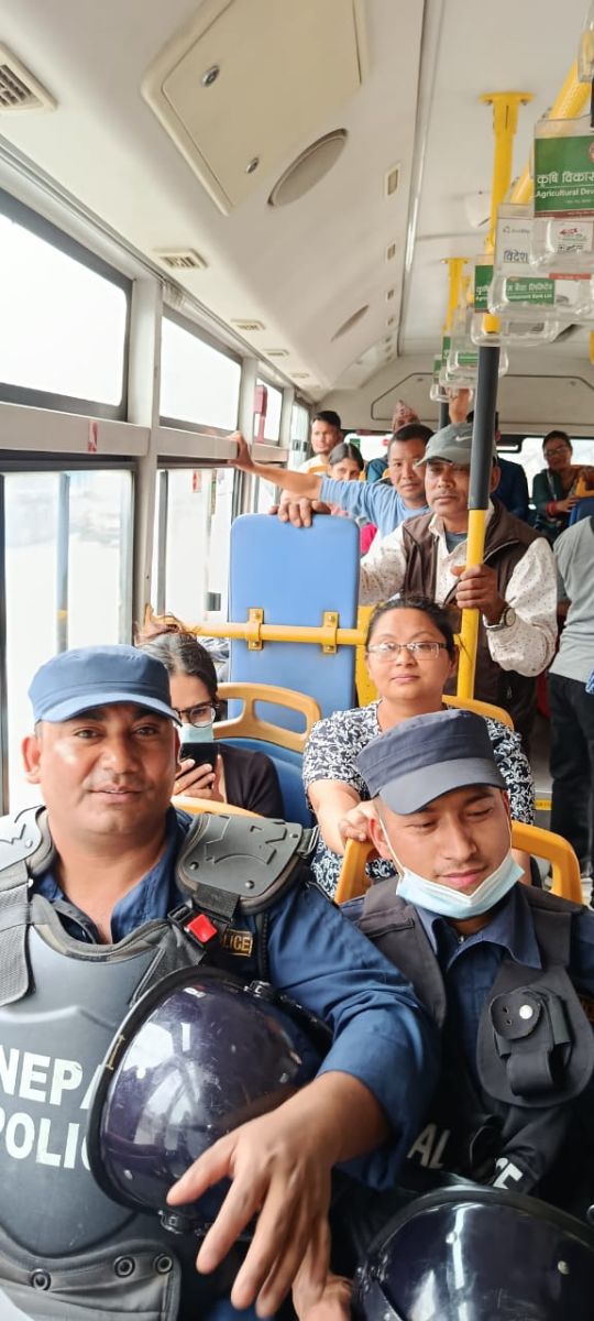 सार्वजनिक यातायात व्यवसायीहरूको बन्दका कारण यात्रुहरूले सास्ती व्यहोरिरहेका बेला साझा यातायातले प्रहरीको बन्दुकसहितको सुरक्षा घेरामा आफ्ना बसहरू सञ्चालन गरिरहेको छ।