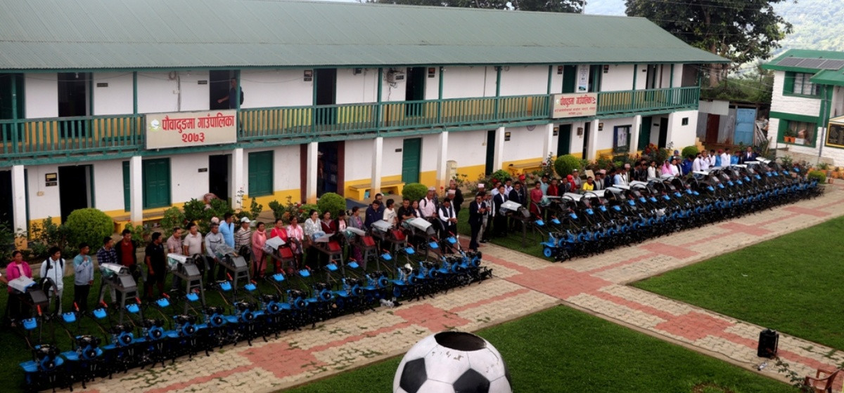 पौवादुङमा गाउँपालिकाले किसानलाई कृषि औजार वितरण गरेको छ । गाउँपालिकाले किसानसँगको लागत साझेदारीमा रु २८ लाख बराबरका कृषि सामग्री वितरण गरेको हो ।