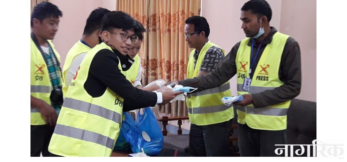 प्रेस सेन्टर नेपालले कोभिड १९ को उच्च जोखिममा पनि अग्र पङ्तीमा रहेर काम गरिरहेका पत्रकारहरुकाे सुरक्षाका लागि स्वास्थ्य सामग्री वितरण गरेको छ। शनिबार नेपाल पत्रकार महासंघको सभाहलमा आयोजित कार्यक्रममा पत्रकारहरुलाई माक्स, पञ्जा र ज्याकेटलगायतका सामाग्रीहरु वितरण गरिएको हो।