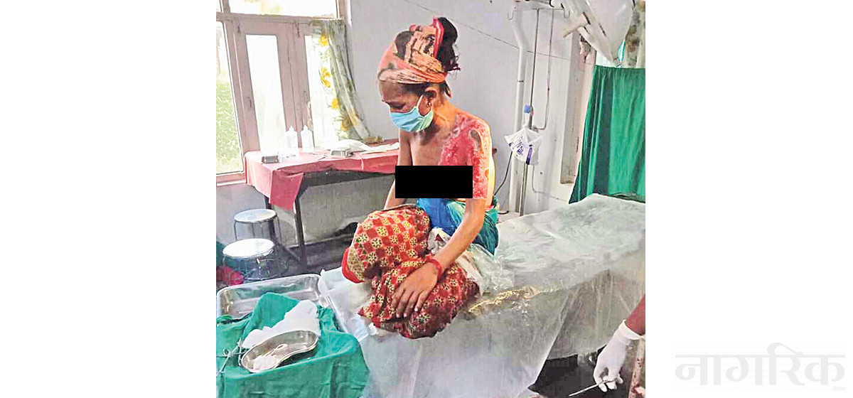 आगोले जलेपछि पनि बसन्तीलाई तत्कालै अस्पतालसम्म पु¥याइएन्। गाउँमै जडिबुटी र झारफकु गर्न थालियो। ‘घरमै घ्यु कुमारी र कुखुराको बोसो लगाइदिन्थे, धामीले बिहान–बेलुका झारफुक गर्थे,’ बसन्तीले भनिन्, ‘अस्पताल आउने आफूसँग पैसा थिएन्, घरकाले ल्याइदिएनन्।’ जलेको भागमा किरा पर्न थाल्यो। ८ दिनपछि छिमेकीबाट १० हजार रूपैयाँ सापटी लिएर बसन्ती अस्पताल पुगिन्। असार १६ गते जेठो छोरा रूपेन्द्रले दुल्लु अस्पतालसम्म पु¥याए। जलिसकेको भागको उपचार दुल्लु अस्पतालमा सम्भव भएन्। केही दिनको उपचारपछि दुल्लु अस्पतालले उनलाई कर्णाली प्रदेश अस्पताल सुर्खेत रेफर ग¥यो। साउन १ गते उनी कर्णाली प्रदेश अस्पताल सुर्खेत पुगिन्।