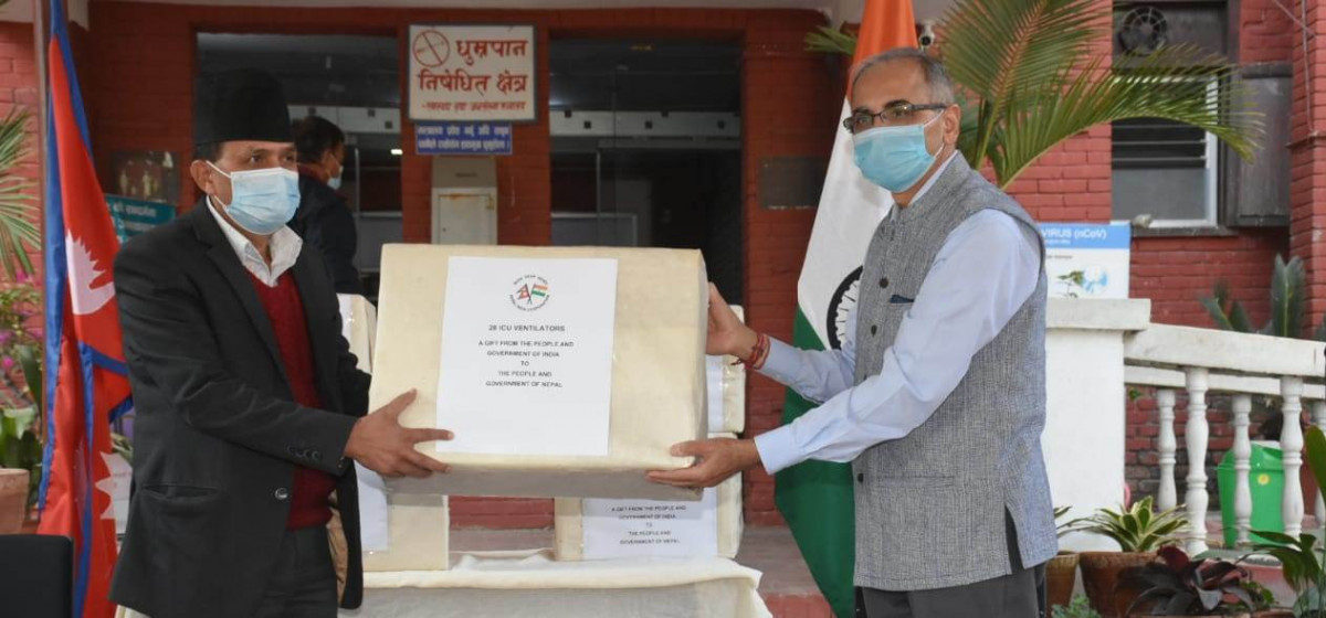 कोभिड–१९ महामारी विरुद्धको लडाईमा नेपाल सरकारलाई भारतले थप आईसीयू भेन्टिलेटर सहयोग गरेको छ। भारत सरकारको तर्फबाट नेपालका लागि भारतीय राजदूत विनय मोहन क्वात्राले आइतबार स्वास्थ्य तथा जनसंख्या मन्त्री भानुभक्त ढकाललाई २८ वटा आईसीयू भेन्टिलेटर उपहार स्वरुप प्रदान गरे।