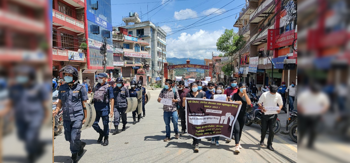 जातीय भेदभाव तथा छुवाछुतविरुद्ध कालोपट्टी बाँधेर प्रदर्शन भएको छ । संयुक्त सचेत दलित संघर्ष समितिले जातीय विभेदकारी घटनाका दोषीलाई कानुनी कारबाही गरी पीडितको आत्मसम्मानको रक्षा र न्यायको पक्षमा उभिन आइतबार गोरखाको सदरमुकामा प्रदर्शन गरेको हो ।