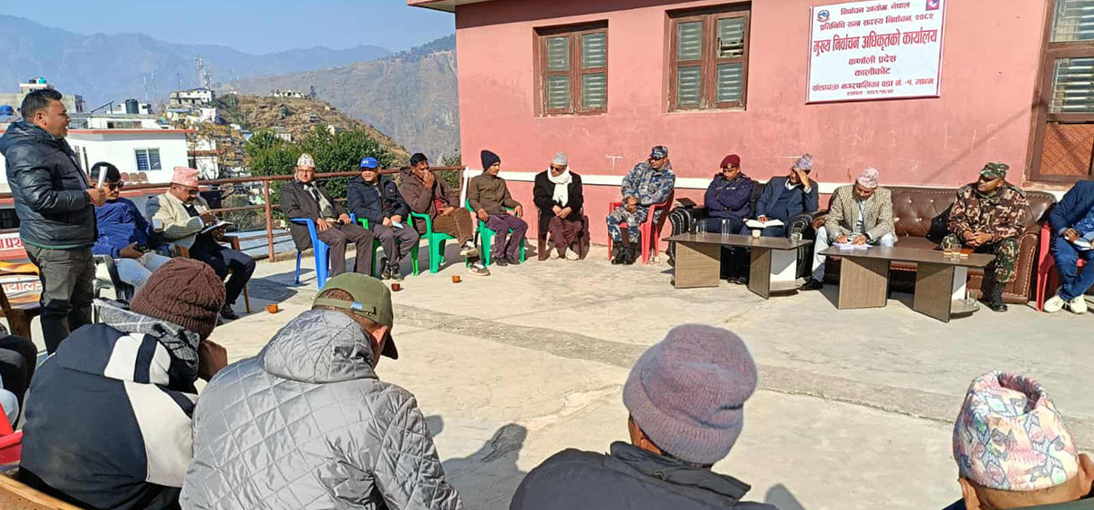 अतिसंवेदनशील मतदान केन्द्रमा १४ जना प्रहरीसहित, सशस्त्र, सेना र निर्वाचन प्रहरी परिचालनको योजना बनाइएको छ। फागुन २१ को चुनावमा हिमपात हुनसक्ने आँकलन गरेर जिल्लाभरका १४ मतदान केन्द्रलाई पनि अतिसंवेदनशीलमा राखिएको हो। कालीकोटको महादेव मावि फोइकोट,मालिका मावि बजेडीचौर, दुर्गा मावि रताडा, जनता मावि रुप्सा, दिपेन्द्र मावि, शिवालय मावि चिल्खायालगायतका मतदान केन्द्रलाई हिमपातका दृष्टिले अतिसंवेदनशील मानिएको छ। कालीकोटमा दुई स्वतन्त्रसहित १० उम्मेदवार चुनावी प्रतिष्पर्धामा छन्।