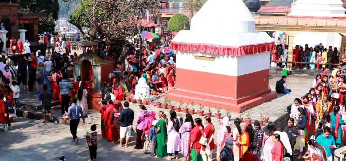 पोखराको विन्ध्यवासिनी मन्दिरमा भक्तजनको घुइँचो