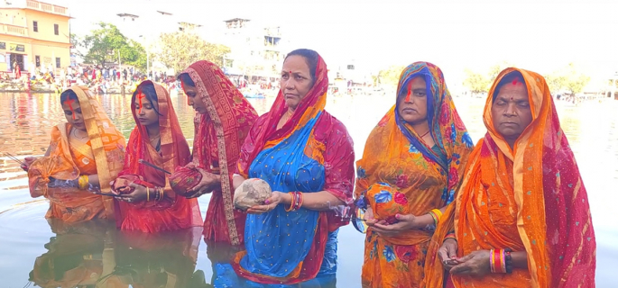 चैती छठ अन्तर्गत अस्ताउँदो सूर्यलाई अर्घ्य